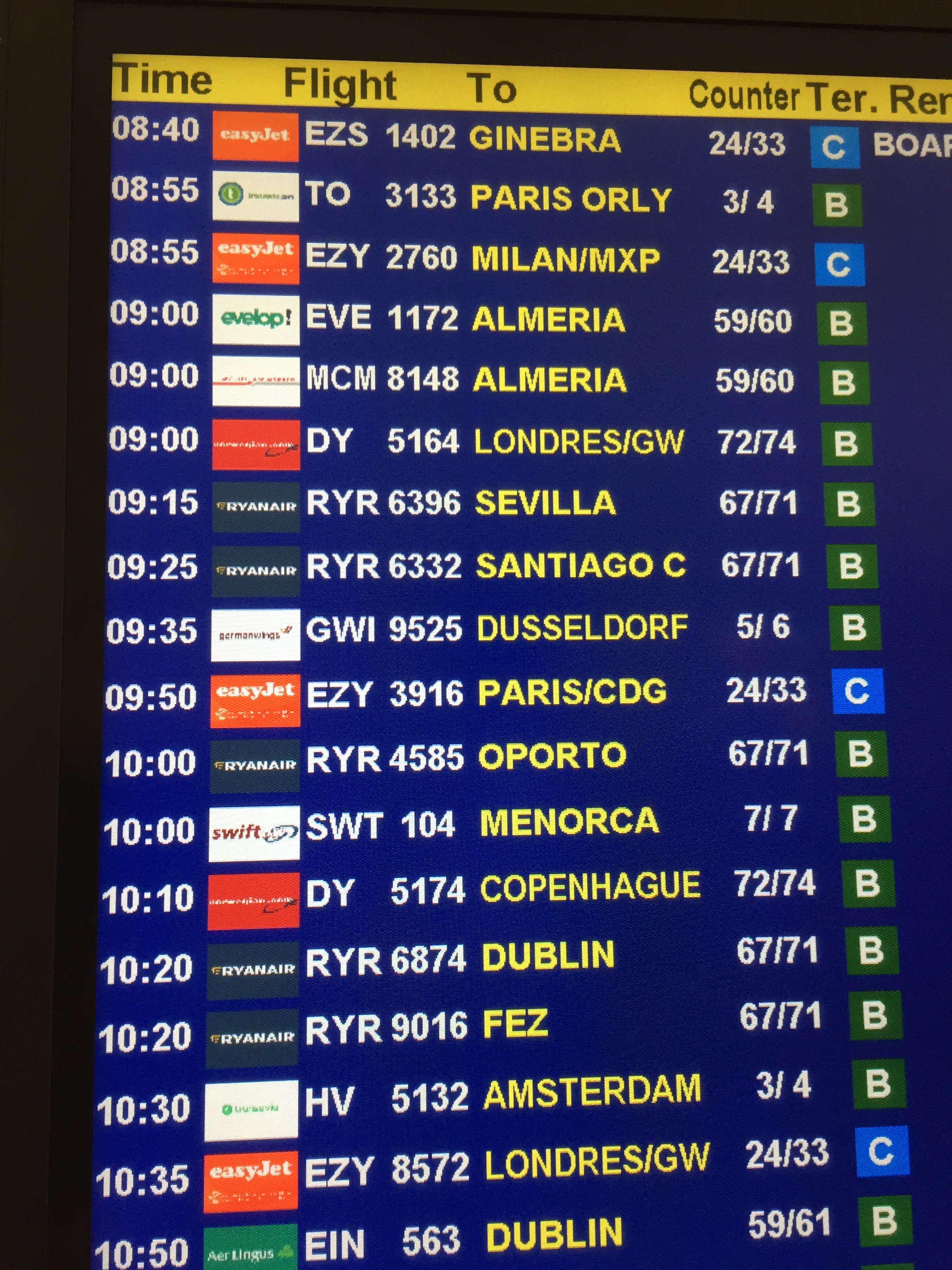 – depois de 05 dias intensos em Barcelona participando da Mobile World Congress, cheguei no Terminal 2 (dedicado para empresas de baixo custo) do Aeroporto de Barcelona as 07:00h, exatamente 02 horas antes do horário de partida; a área check-in do terminal não é moderna, mas é muito espaçosa e funcional (há mais de 100 guichês de check-in)