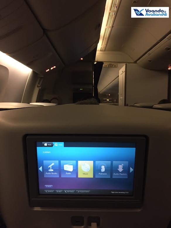 – o sistema de entretenimento é fantástico, tamanho bom, tela touch screen, muitas opções de filmes, a maioria com legendas em português; comecei a ver um filme antes mesmo de decolar: The Avenger – Age of Ultron e depois emendei Velozes e Furiosos 7; para ver os filmes, 04 minutos de propagandas são obrigatórios, chato…
