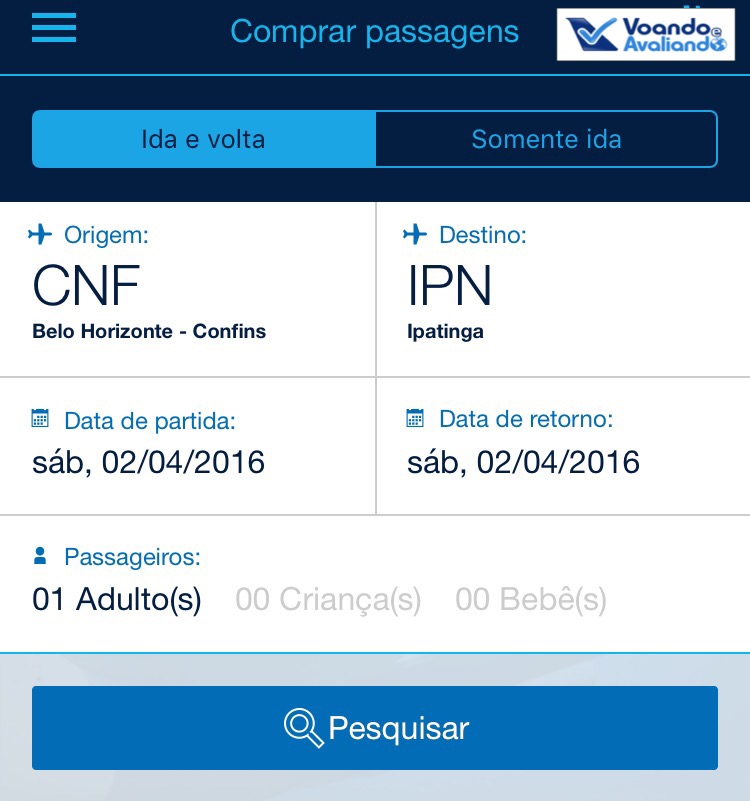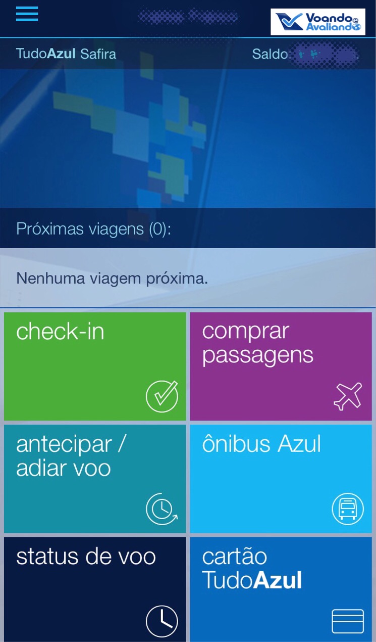 – AZUL (e TudoAzul): é de fácil navegação e o mais completo: opções de fazer check-in, antecipar/adiar voos, consulta de reservas, status de voos, informações sobre as linhas do Ônibus Azul e compra de passagens (somente pagando); na parte do TudoAzul, mais opções: saldo, extrato, alteração de cadastro e senha de acesso, além de cadastro de preferência de assentos; simulei uma compra de Belo Horizonte para Ipatinga, é muito fácil entender e fazer a compra: