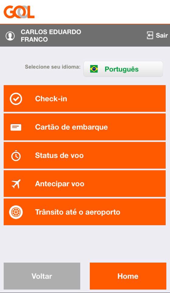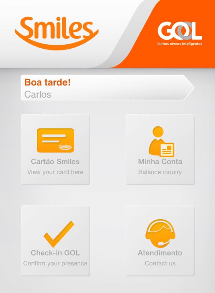 – GOL (e Smiles): a navegação é fácil, intuitiva e rápida; pode-se fazer check-in (com marcação de assentos) e antecipação de voos (limite de 06 horas); além disso, há dados sobre a situação dos voos e informações do trânsito até o aeroporto de partida do voo; na parte do Smiles, é possível consultar saldo e extrato das milhas; pagando ou com milhas, e somente no final de 2015 passou a ser possível emitir passagens a partir dele: