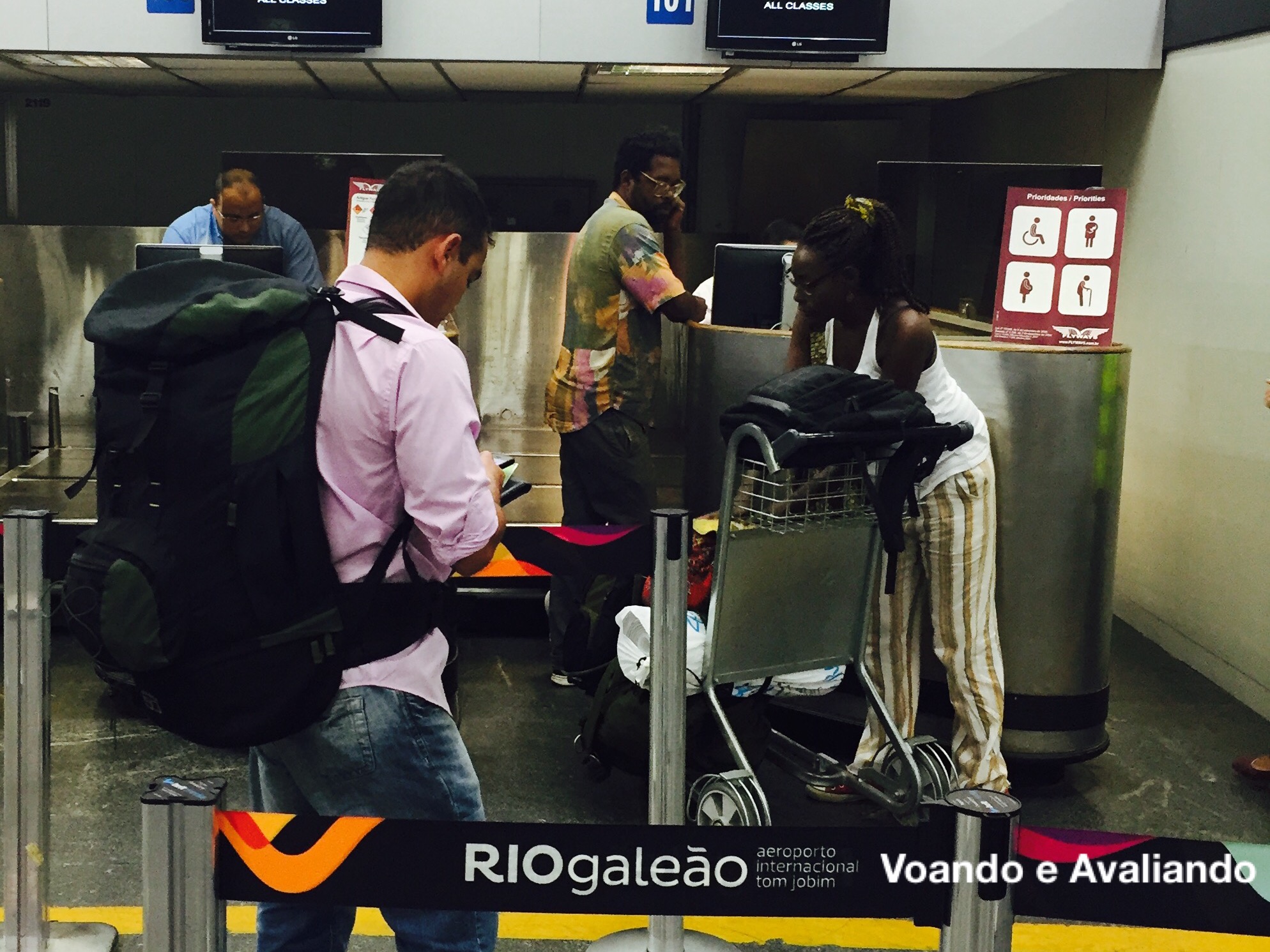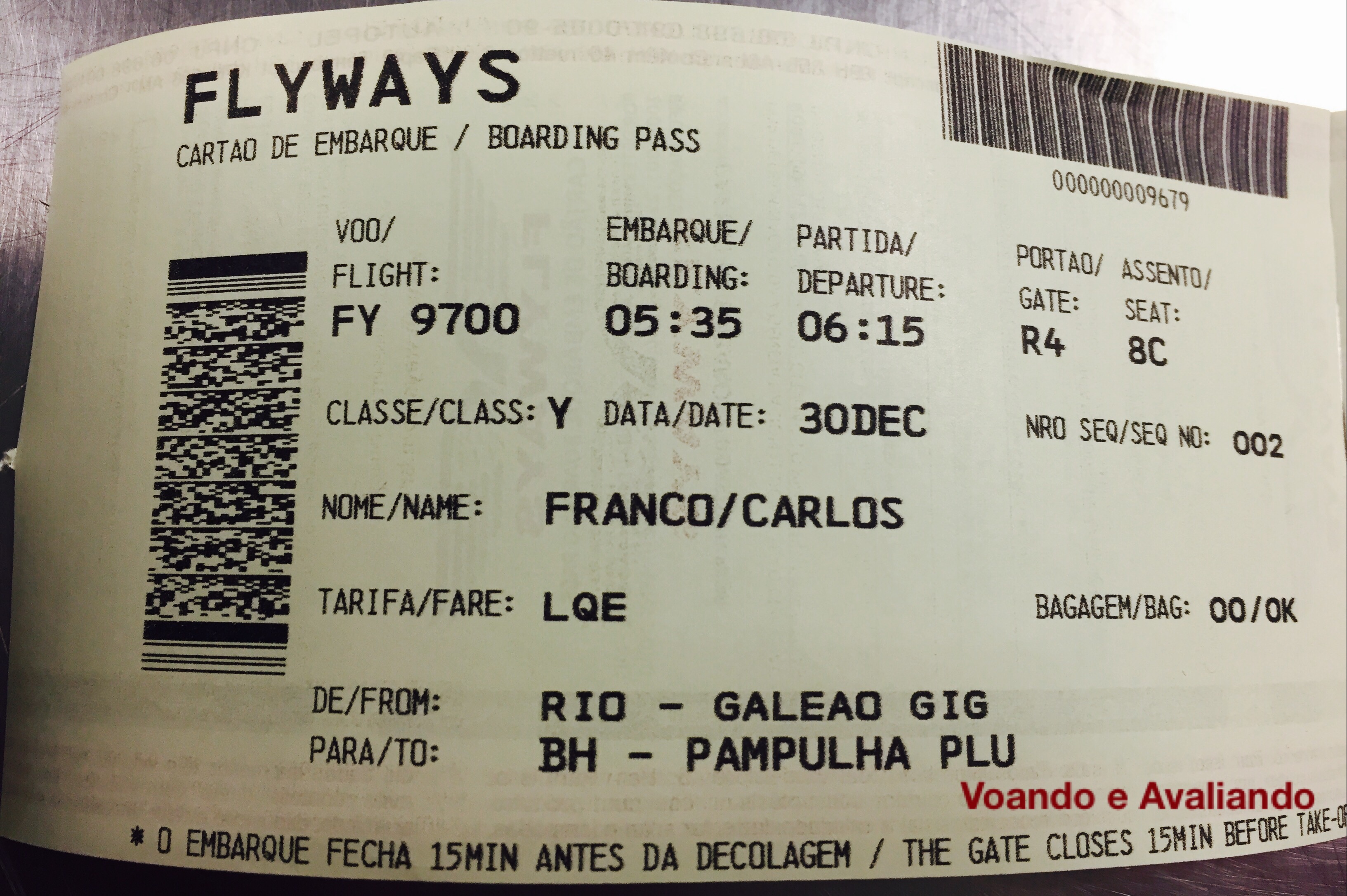 – cheguei no Galeão às 05:20h e passei no balcão da Flyways: queria conferir como era o atendimento do staff da companhia; dos 02 guichês (100-101) dedicados à empresa, que ficam no extremo direito do aeroporto, somente 01 funcionava; pedi para trocar o assento para uma janela e não foi possível: o atendente Luís se desculpou, explicando que sistema é novo e algumas opções ainda não estão liberadas; ele informou que somente 10 passageiros estavam confirmados no voo