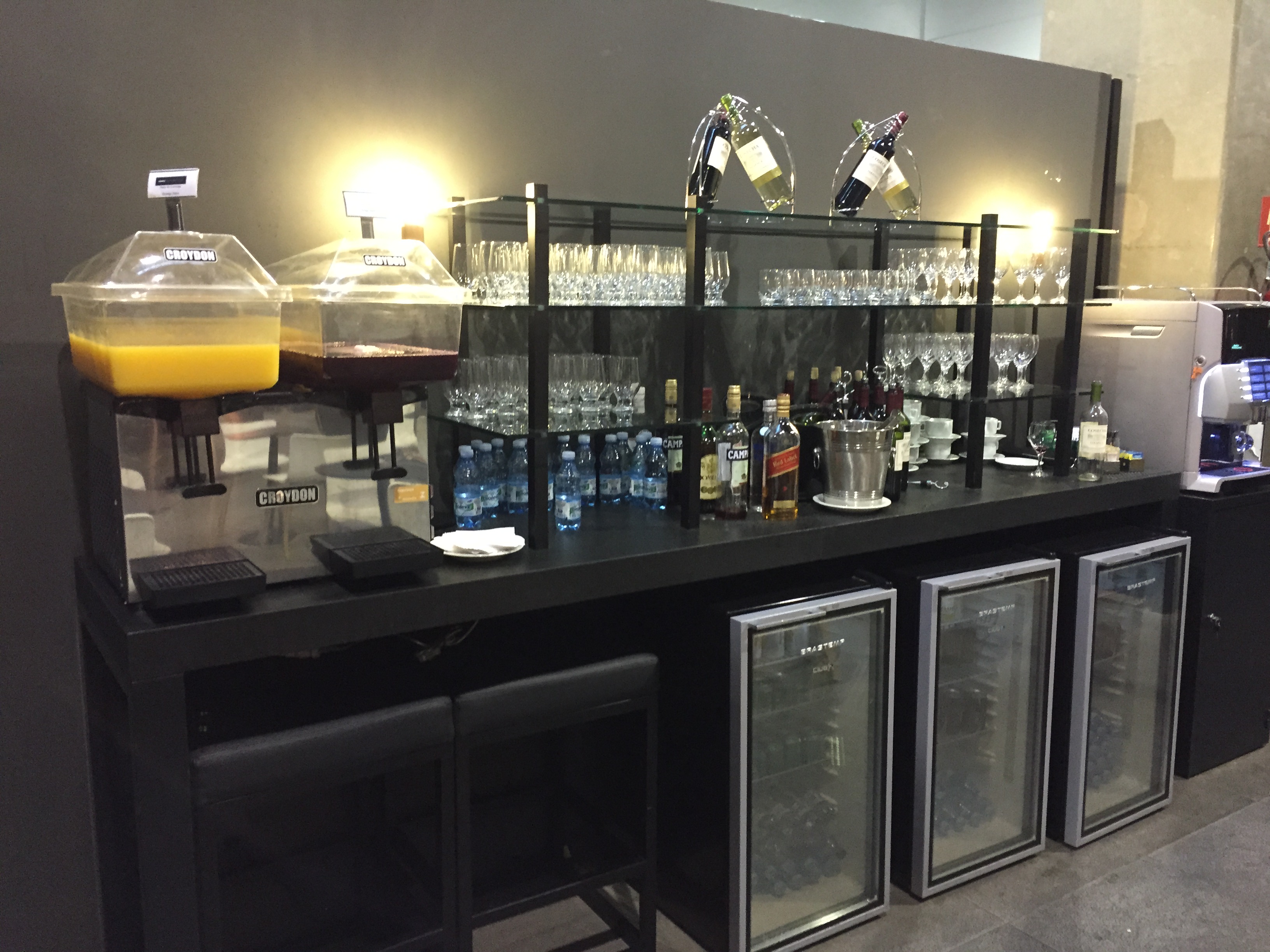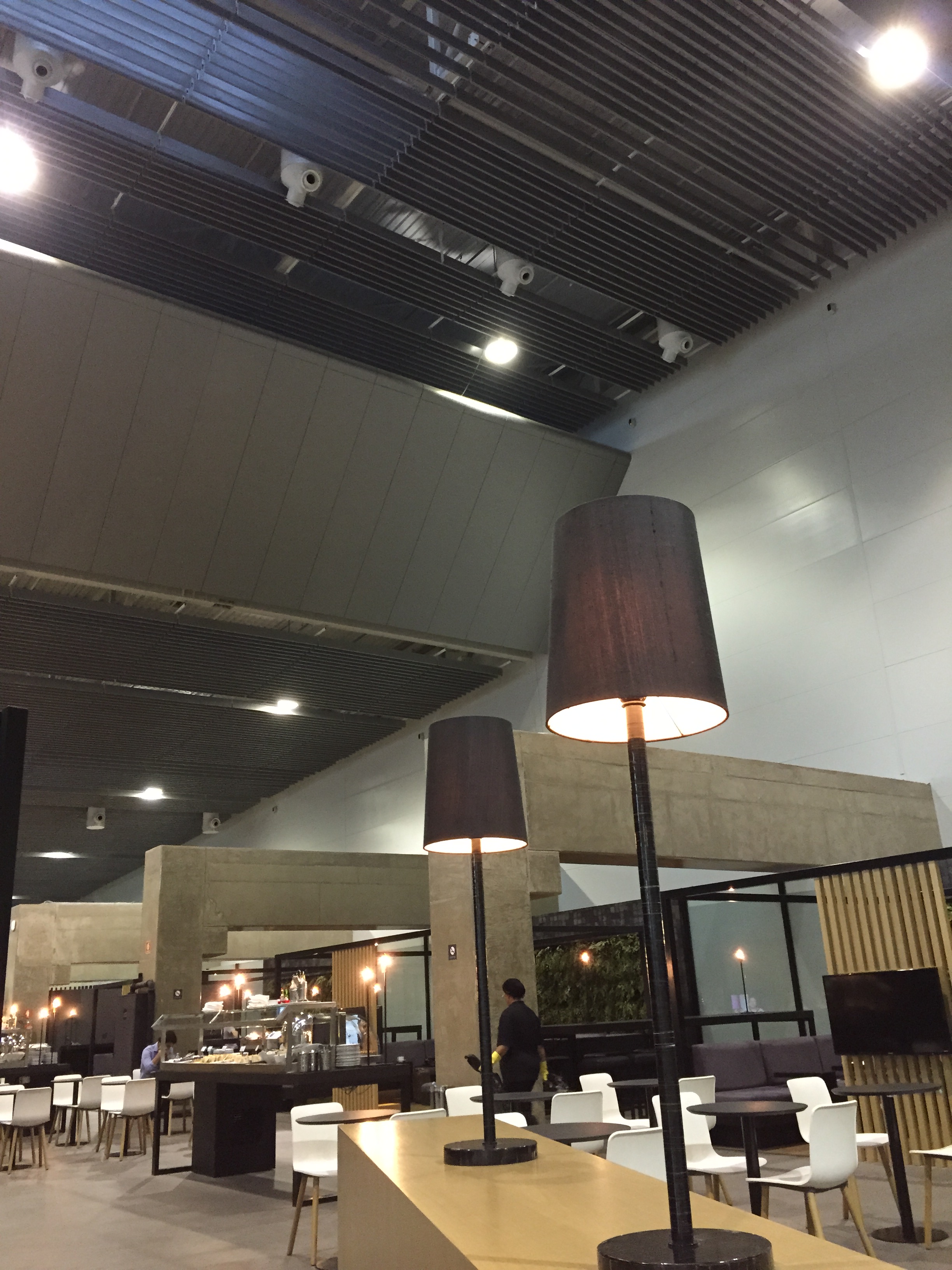 – fui para a Sala Vip do GRU Airport (fotos); o espaço é amplo (mas acredito que em dias/horários de pico se torne apertado) mas sem exageros, a decoração é simplista; o buffet é variado, mas nada de excepcional (uma massa, sanduíches, salpicão, frios, sopa de milho e 03 tipos de doces); o vinho disponível era chileno (Cosecha Tarapaca – 2013) e havia uma vasta opção de bebidas alcoólicas; testei o Wi-Fi gratuito e ele funcionou muito bem; o banheiro é extremamente simples, nota negativa para a Sala Vip