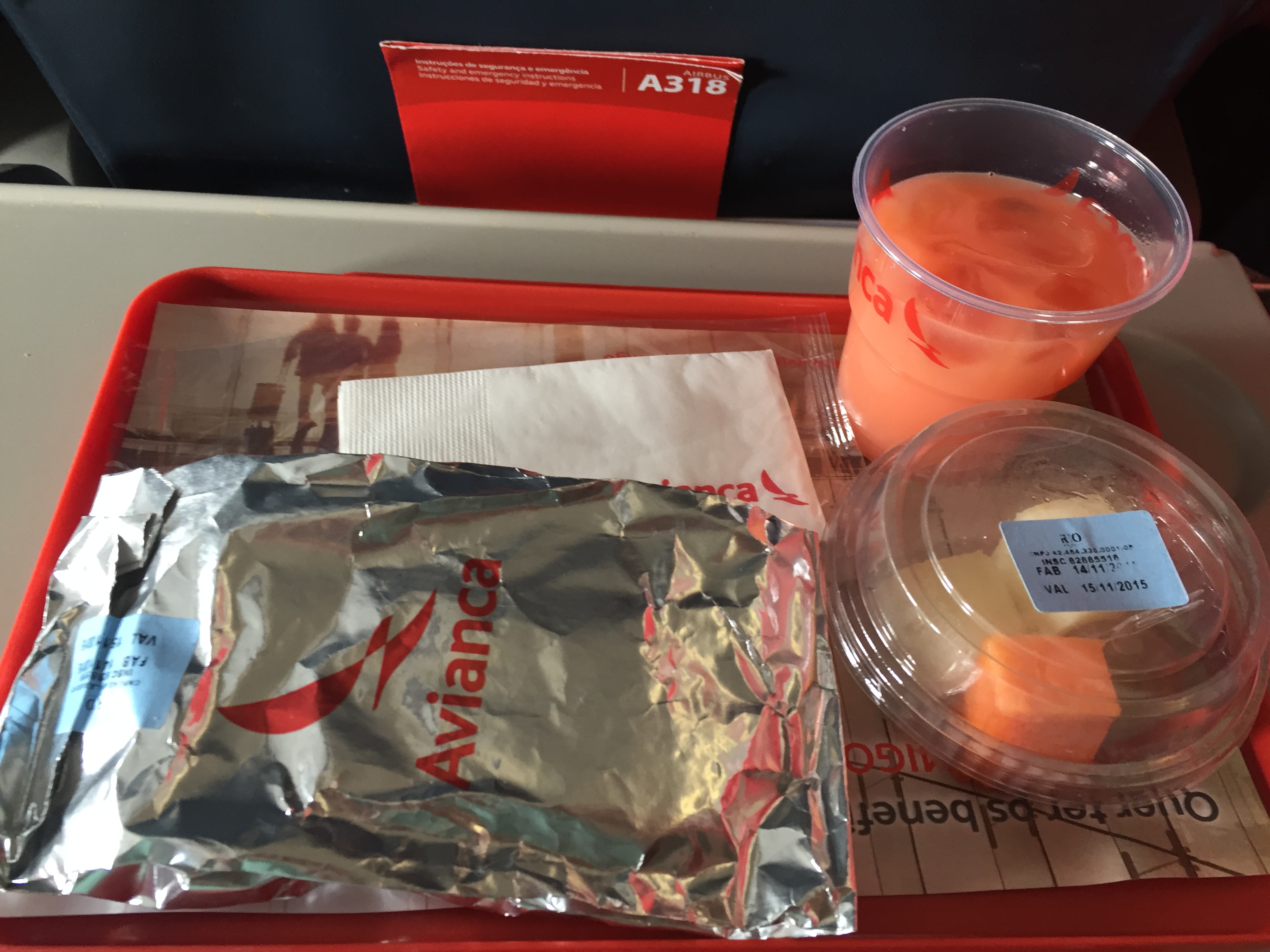 – logo depois que o aviso de apertar cintos foi apagado, as comissárias se apressaram para oferecer o serviço de bordo: sanduíche frio de lombo canadense com cream cheese, mini-porção de frutas e sucos variados (escolhi de goiaba light); simples, mas gostoso