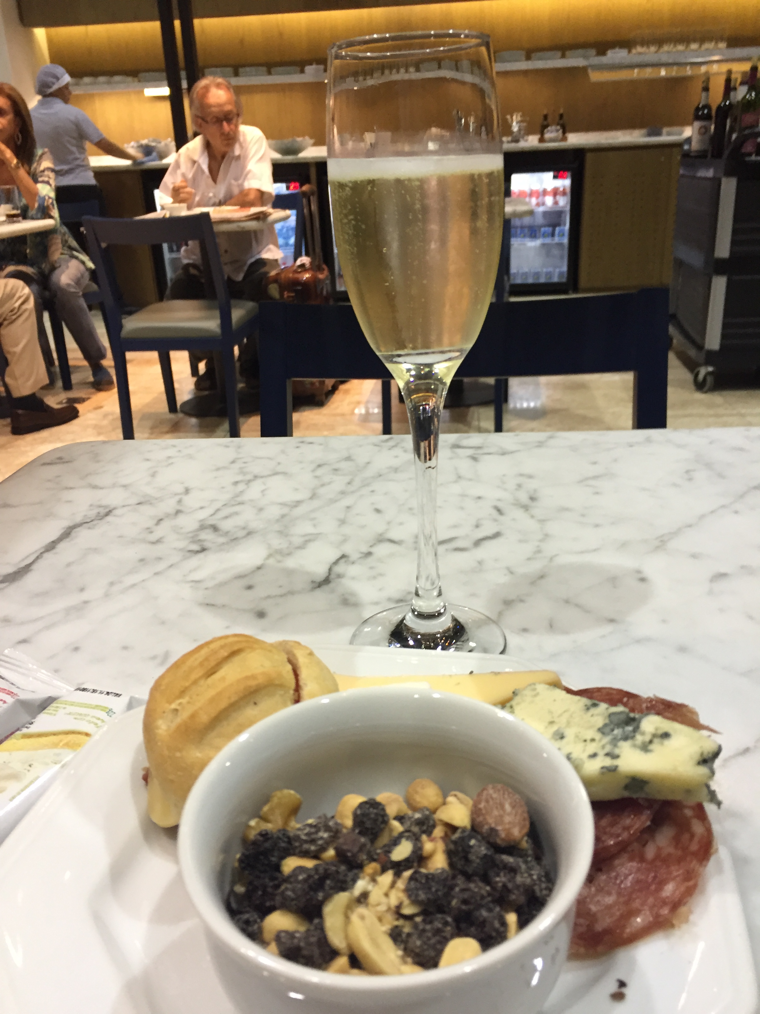 – tomei o tradicional champagne de “welcome”, mas a Comissária Tatiane (responsável pelo atendimento dos passageiros do meu lado) esqueceu de me oferecer o potinho de snacks, nada de grave…