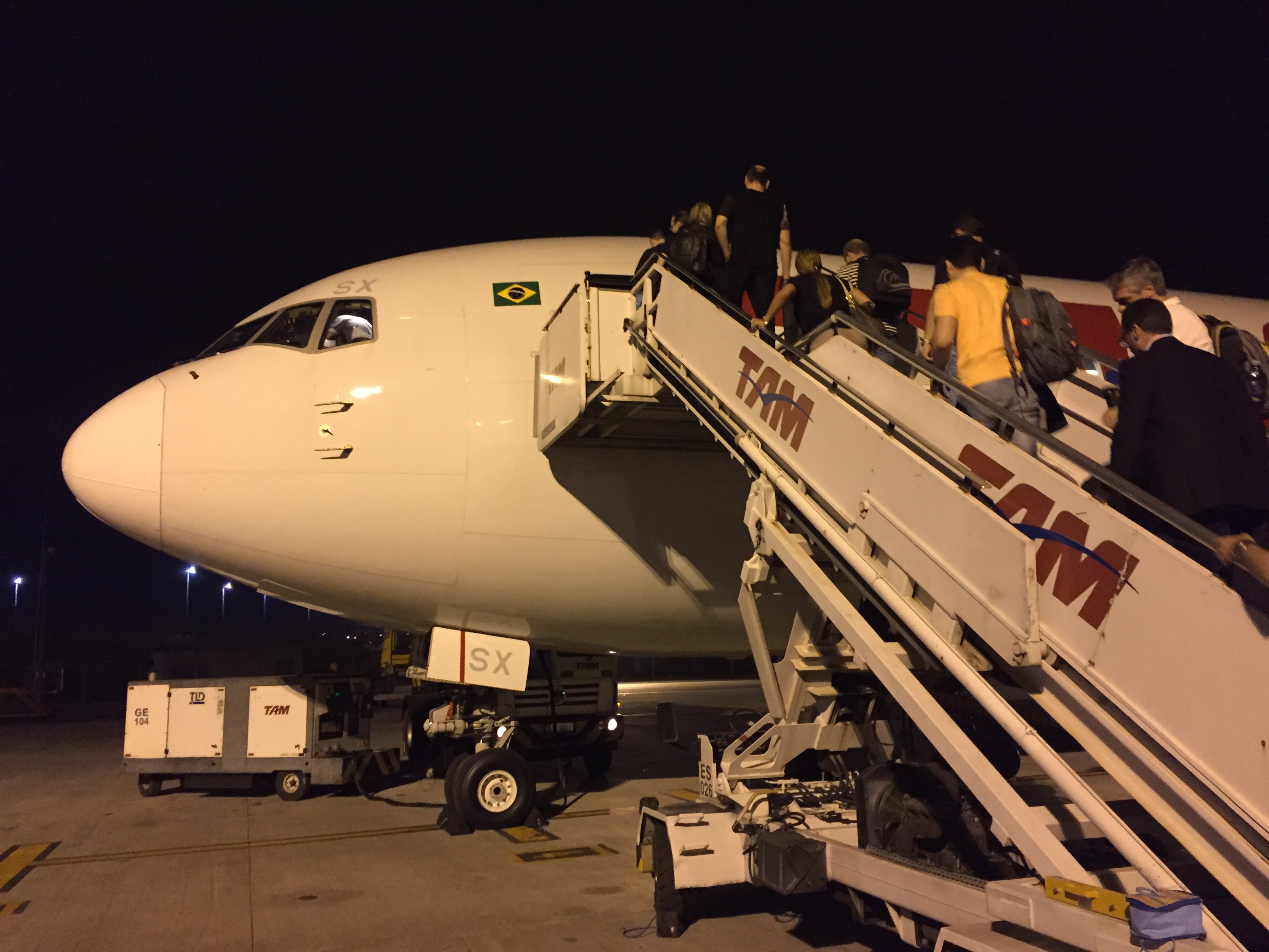 – o voo Rio-Guarulhos foi feito no Airbus A320 (prefixo PT-MZH, entregue em dezembro de 2000, um dos mais velhos da frota da TAM – selo C da ANAC, pouquíssimo espaço para as pernas); o voo foi tranquilo, apesar da sensação “lata de sardinha”; cheguei às 20:30h, com folgas para o próximo voo de 22:55h