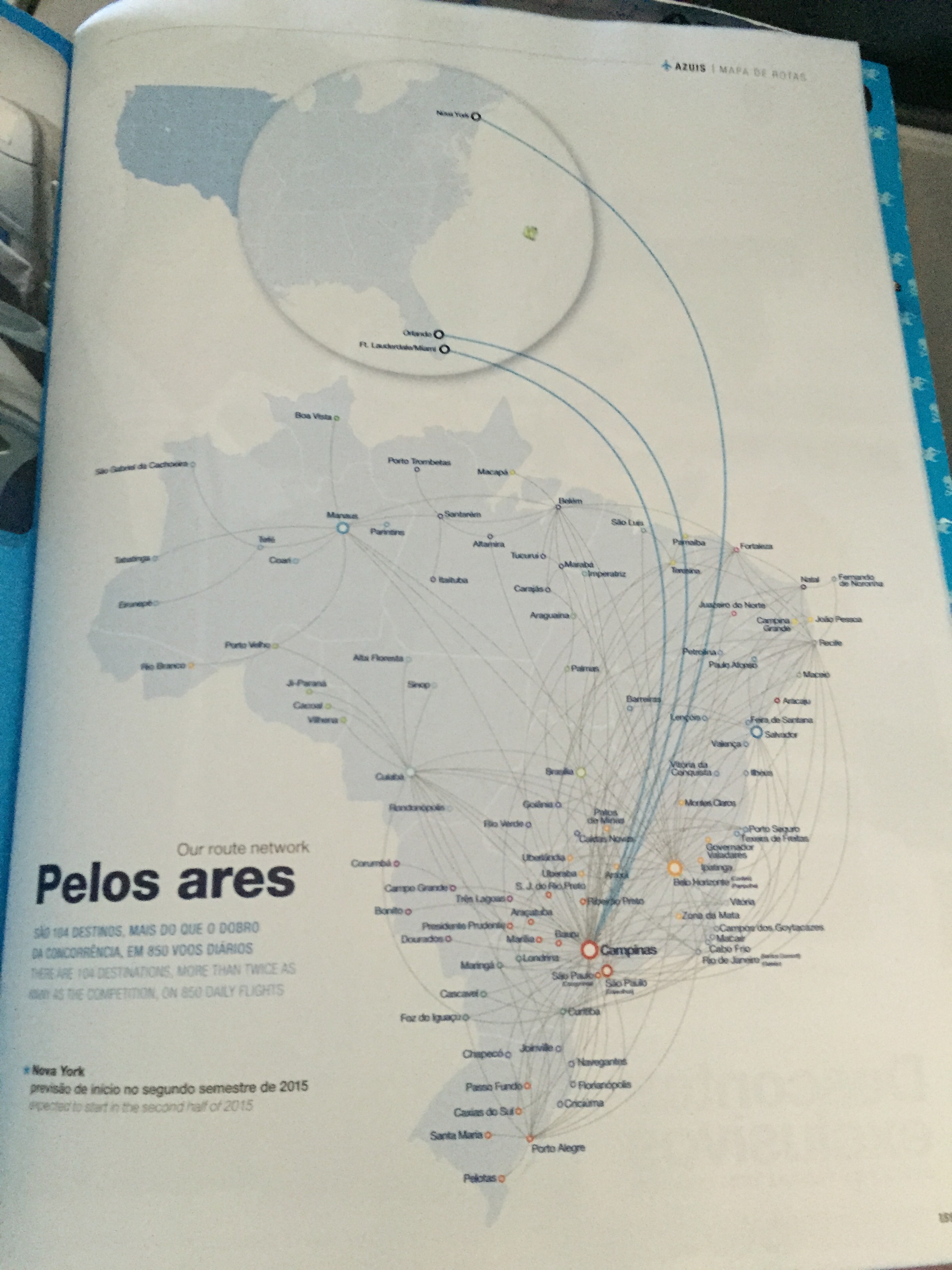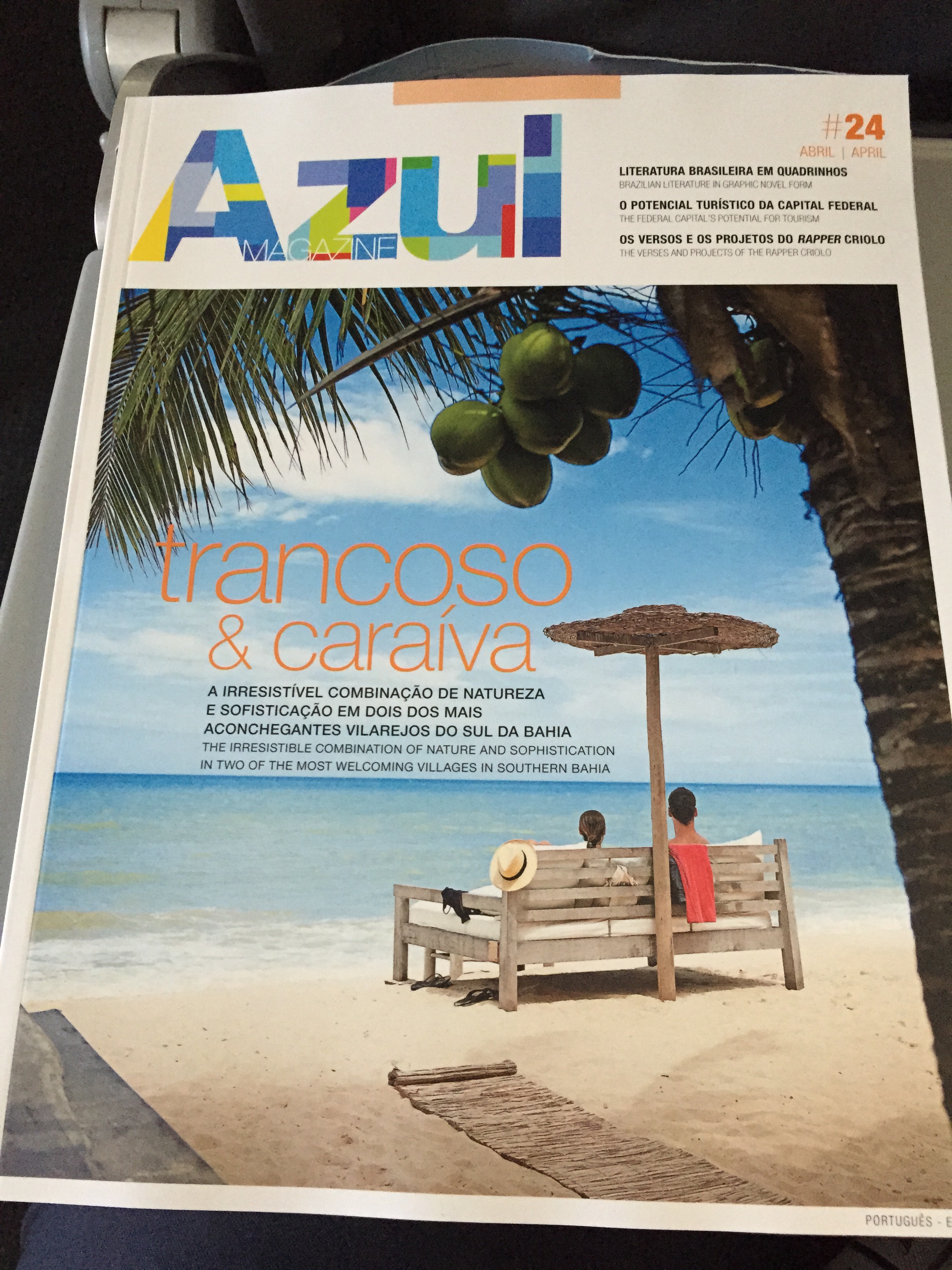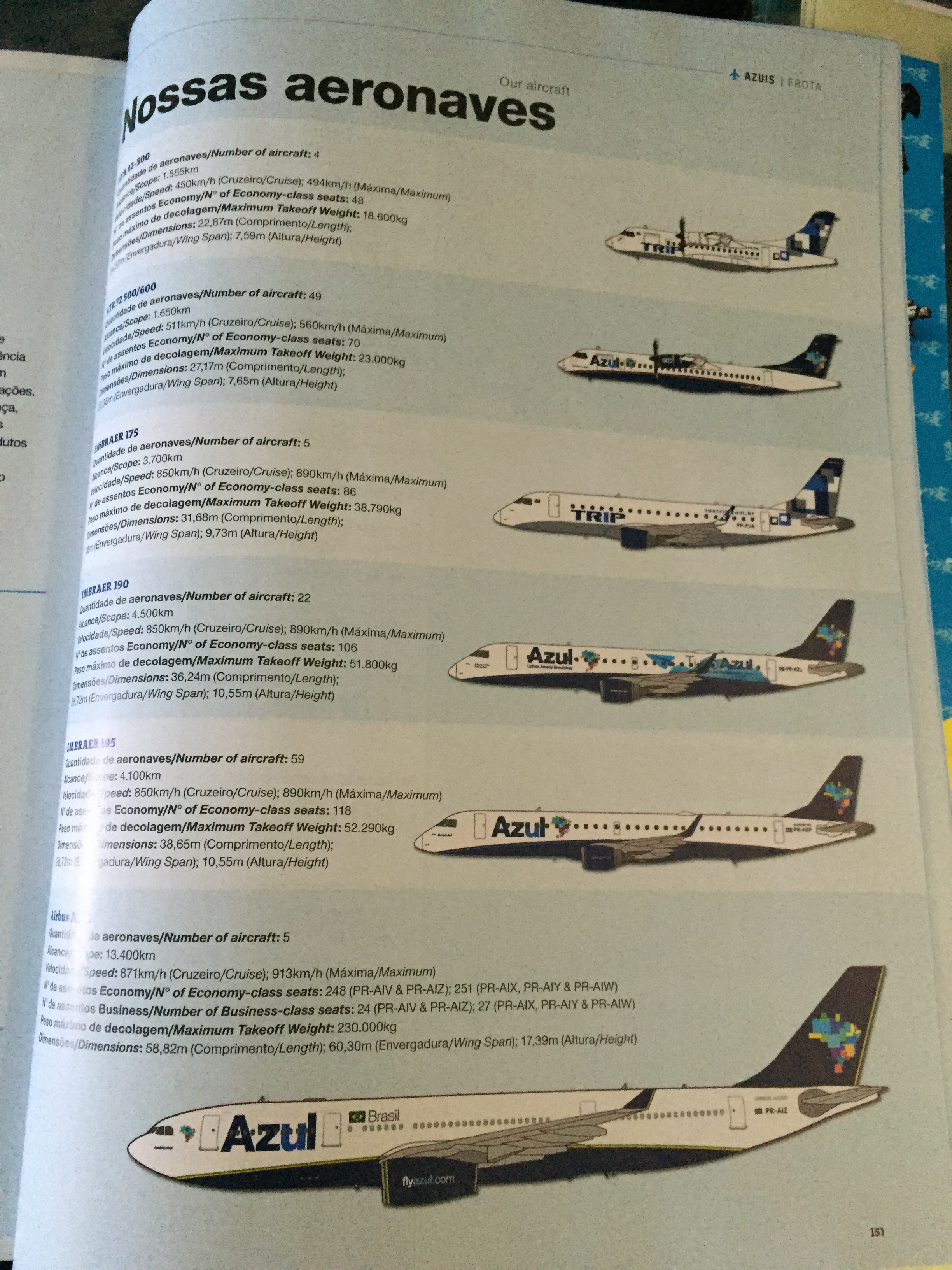 – os passageiros têm à disposição a revista Azul Magazine, que traz grande variedade de reportagens (viagem, cultura, literatura e muita propaganda…são 14 páginas de anúncios antes da 1ª matéria), além de informações sobre a frota e os destinos da Azul