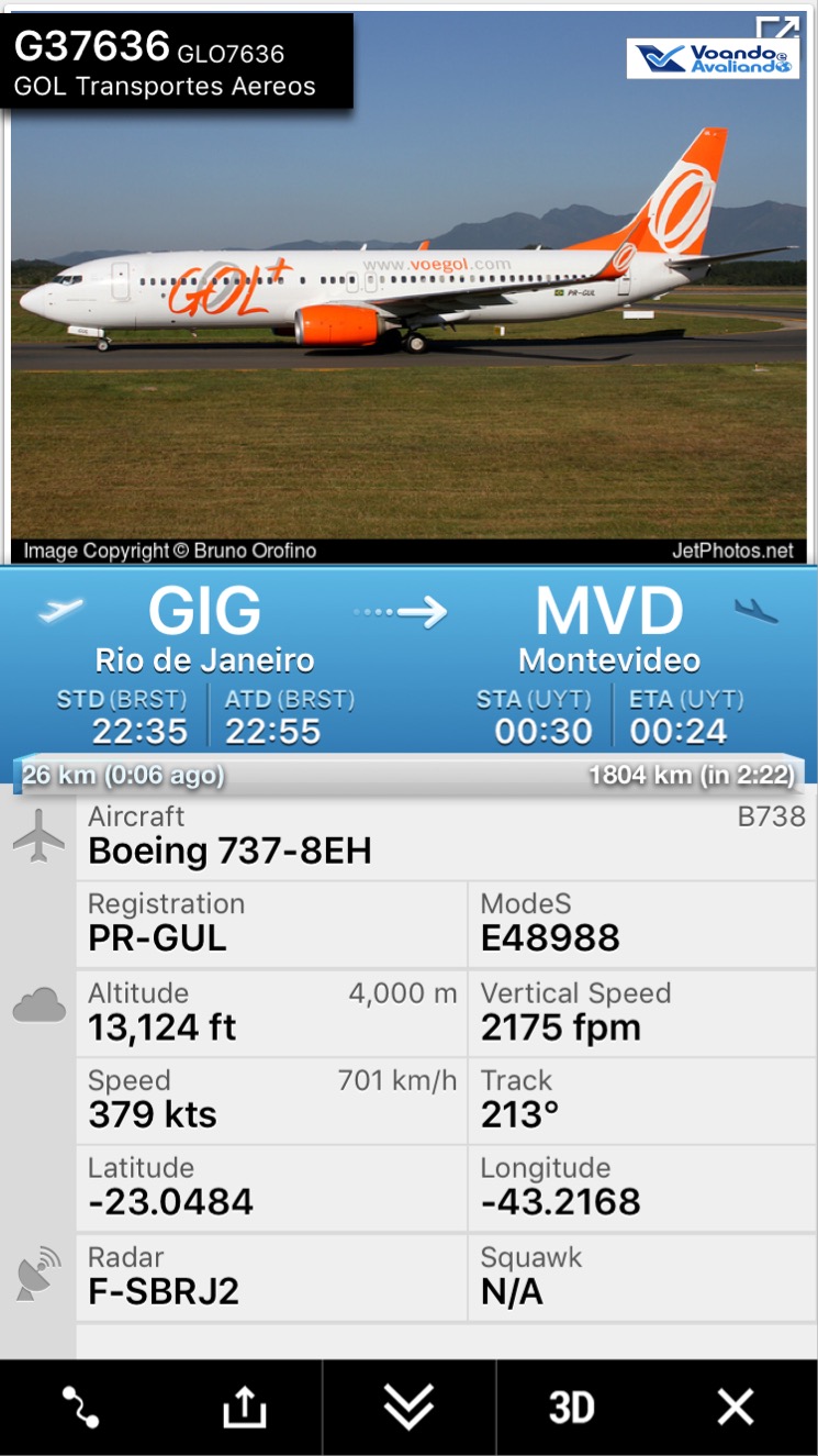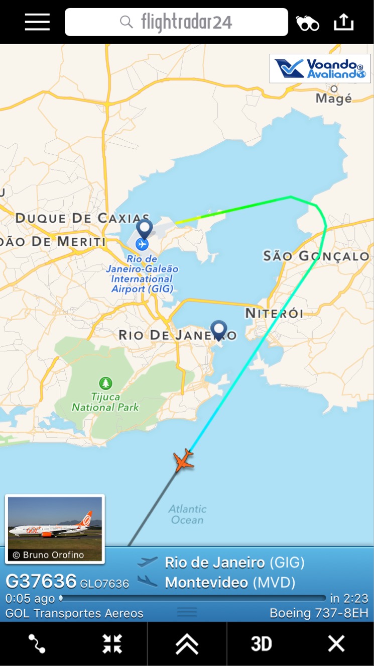 Na hora que escrevia este post, pesquisei a área do Aeroporto Internacional do Rio de Janeiro. Um Boeing 737-800 da GOL tinha acabado de decolar com direção a Montevidéu: