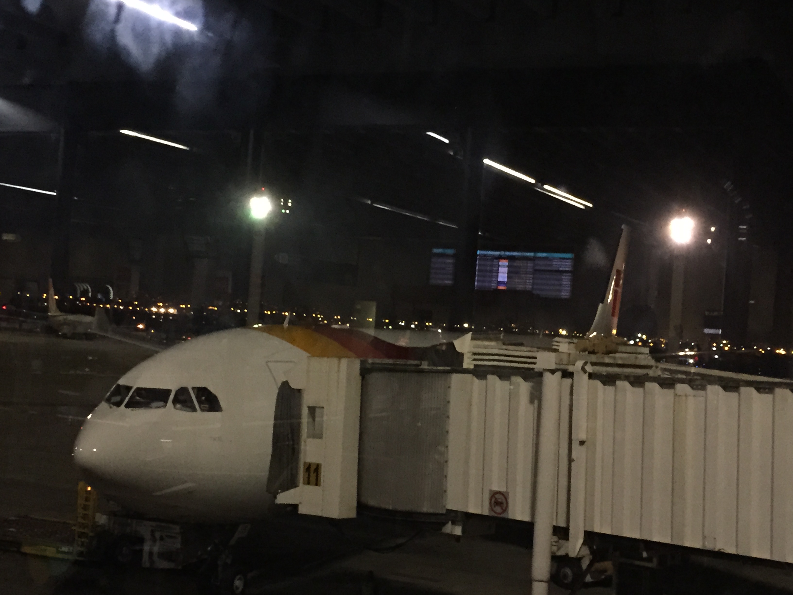 – as 19:15h já estava em frente ao Portão 11 aguardando o embarque no A330; anúncio de início de embarque foi feito às 19:30h; a ansiedade de alguns para entrar logo no avião e a falta de orientação clara do staff da Iberia contribuem para a confusão (o check de documentos começa para todas as filas ao mesmo tempo); desta vez, consegui driblar as barreiras humanas e passar pelo controle rapidamente e ir direto para a aeronave