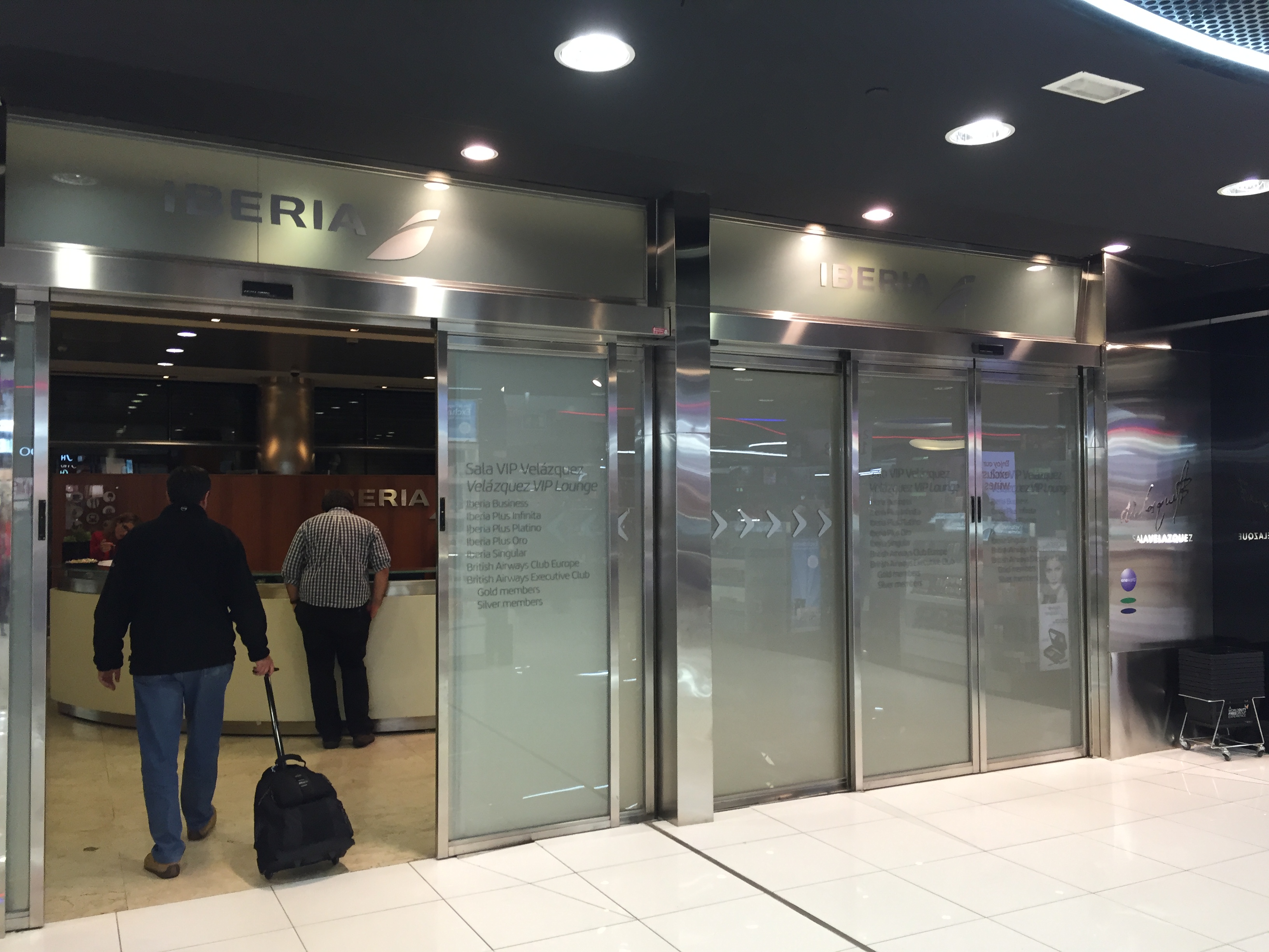 – passei muito rápido pelo controle de segurança (vazio, sem fila), peguei o trem que leva aos portões de embarque e fui direto para a Sala VIP que a LAN utiliza em Madrid: a Sala Velásquez da Iberia, que fica muito bem localizada, a entrada é dentro do (enorme) Free Shop
