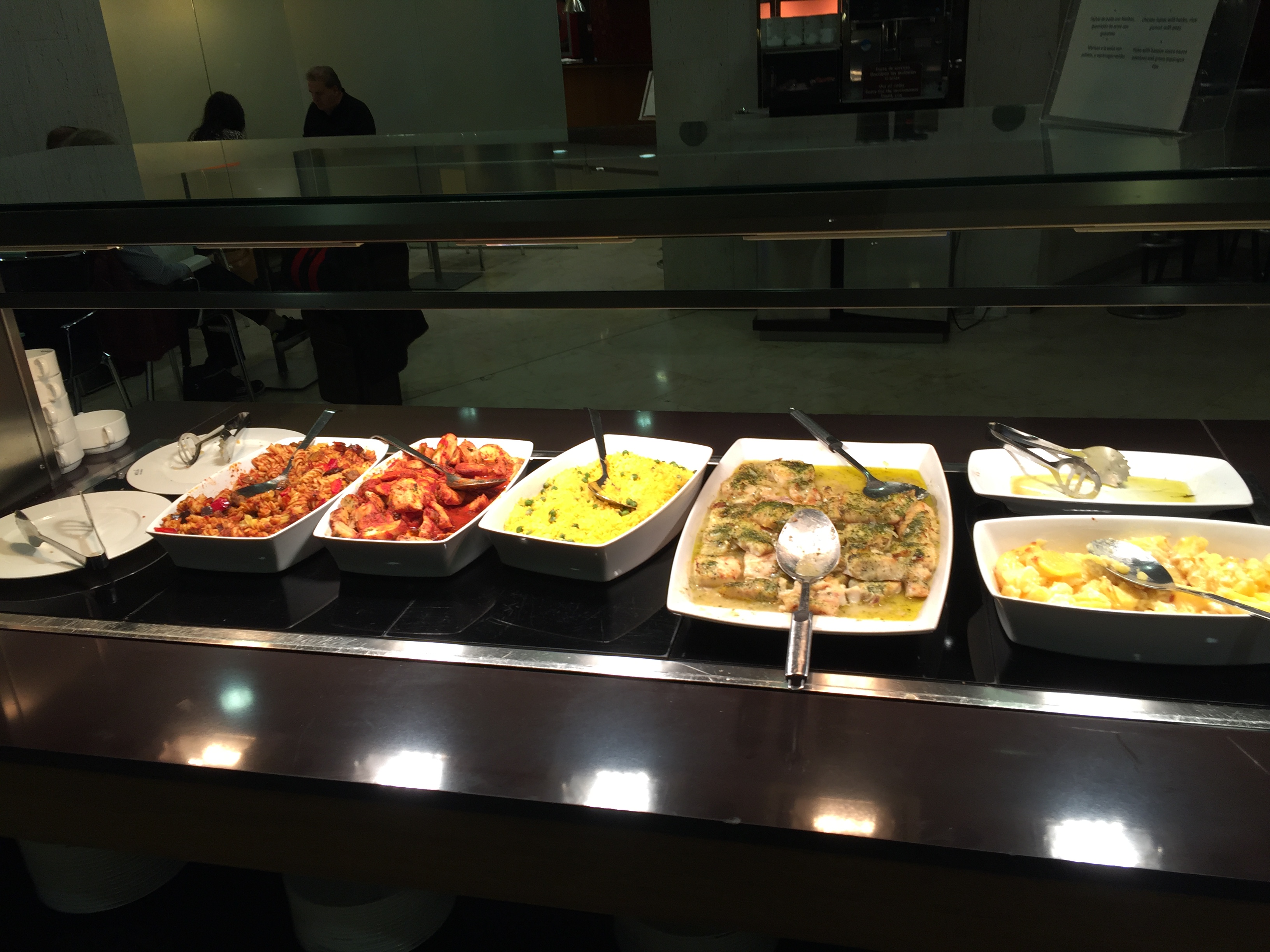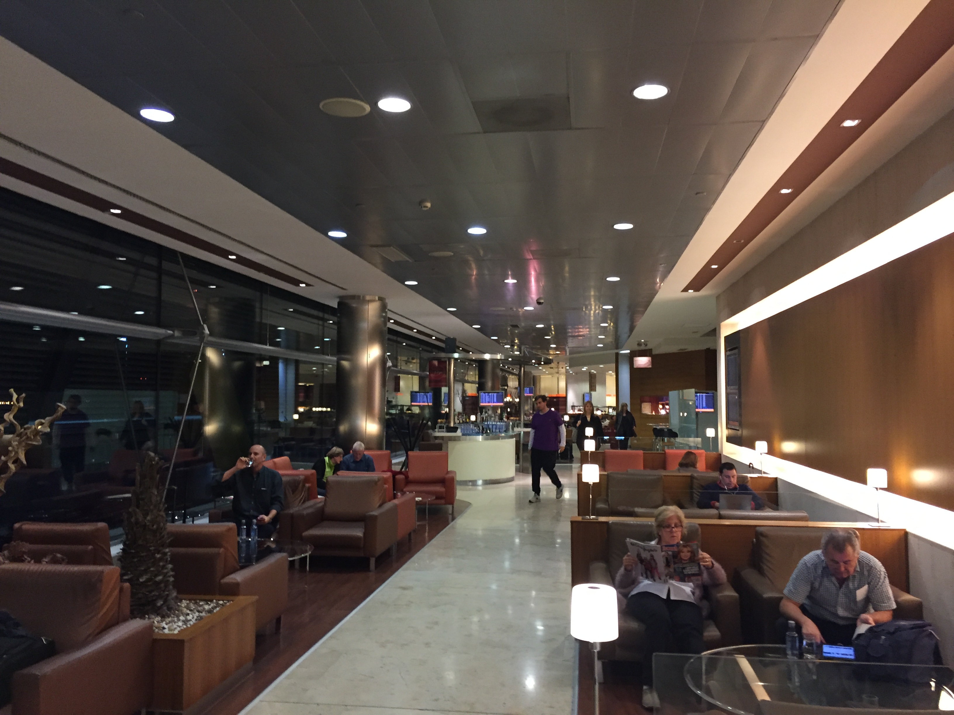 – o espaço é grande e confortável; há jantar à disposição (opções de peixe e frango+ salada), além de vários tipos de sanduíches; sorvete HagenDazs e frutas; aproveitei para usar a facilidade de tomar banho (havia uma pequena lista de espera): a recepcionista me alertou que na cabine disponível só tinha água gelada: sem problemas para uma pessoa com rinite alérgica como eu; resumindo: um dos melhores Lounges que já visitei, muito bom