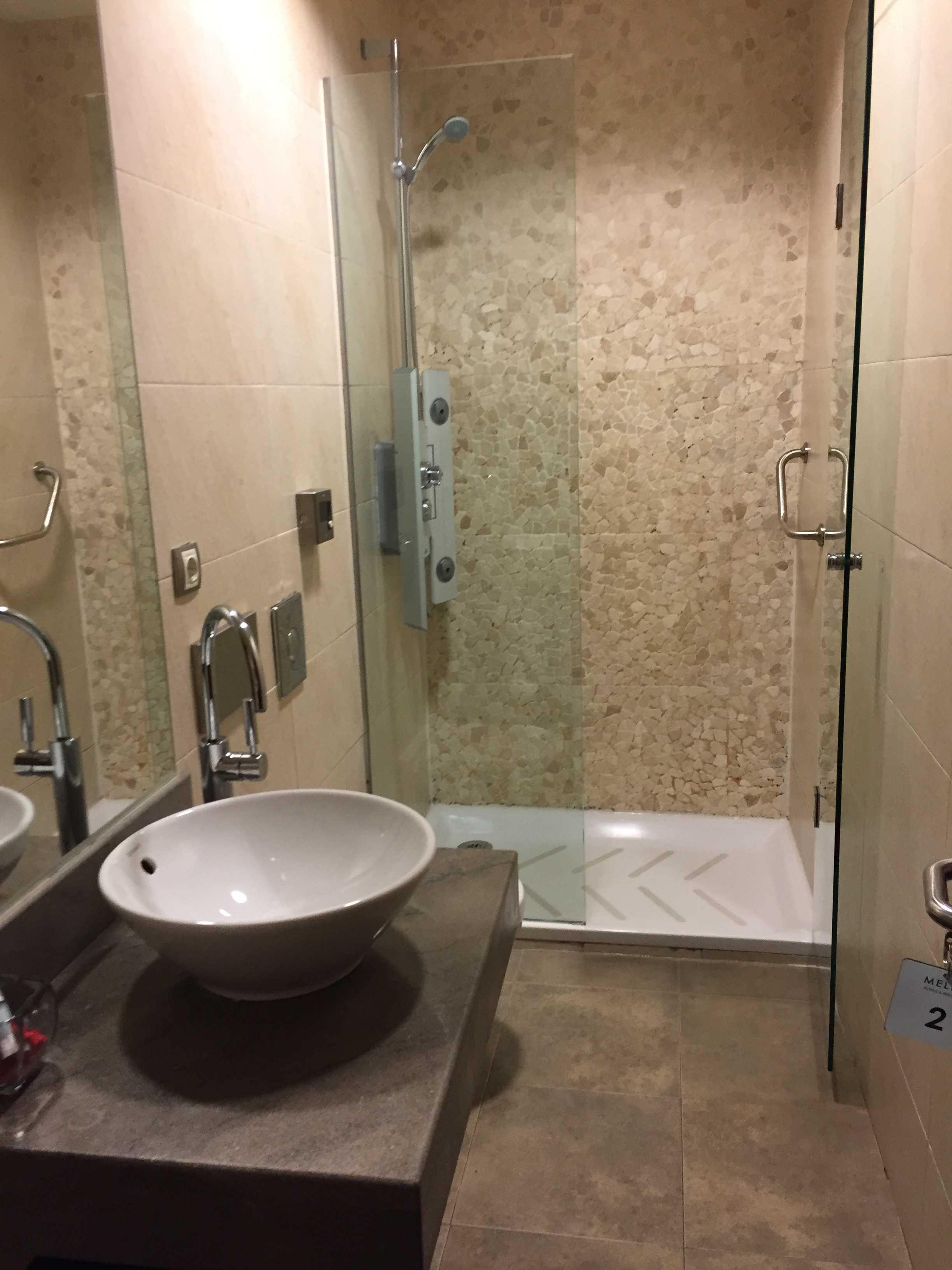 – antes de dormir, fui ao banheiro: pequeno, mas a tarefa de escovar os dentes não foi tão difícil