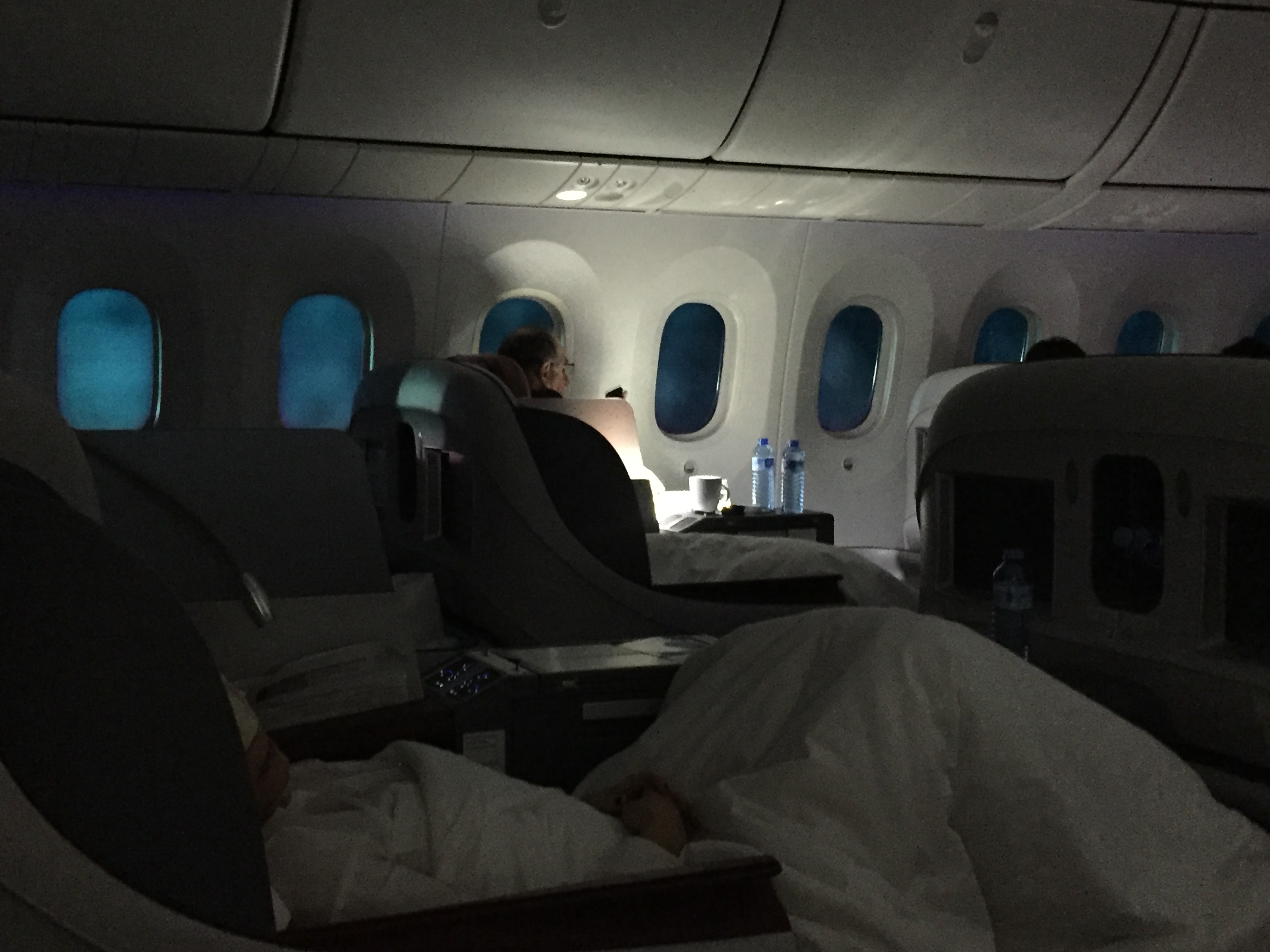 – foram incríveis 08 horas de sono, acordei descansado: o assento vira uma cama flat, com bom espaço lateral e muito conforto; o travesseiro e o cobertor são ótimos, o que ajuda muito