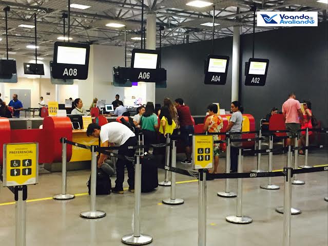 – o T1, mesmo sendo o menor de todos os terminais em Guarulhos, é espaçoso, ainda mais considerando que só atende aos passageiros da Azul e Passaredo, que voam com aviões pequenos; tem alguns restaurantes (fast-food) e lojas; já conta com as catracas eletrônicas: é preciso passar o cartão no leitor para ter acesso ao saguão de embarque