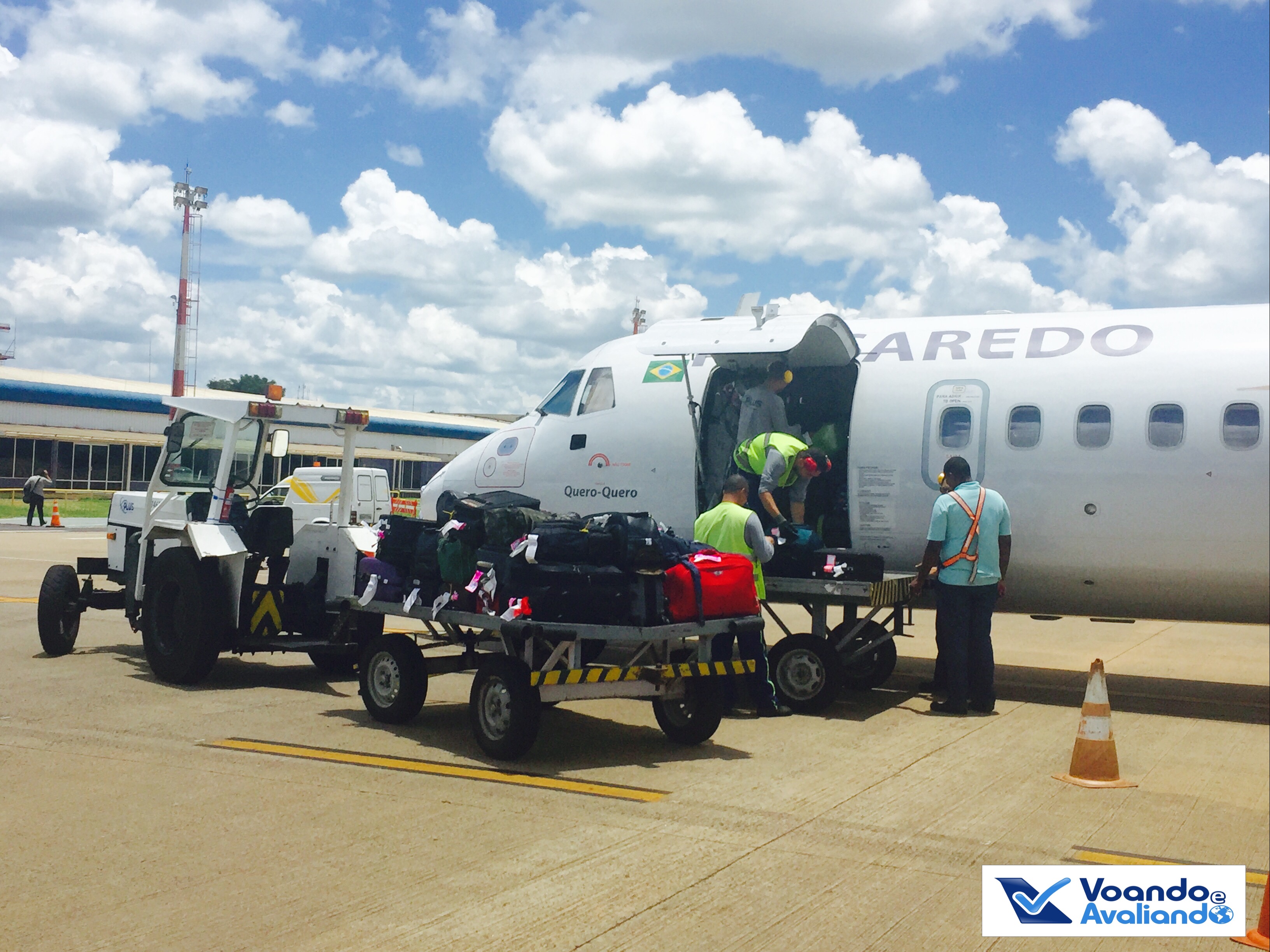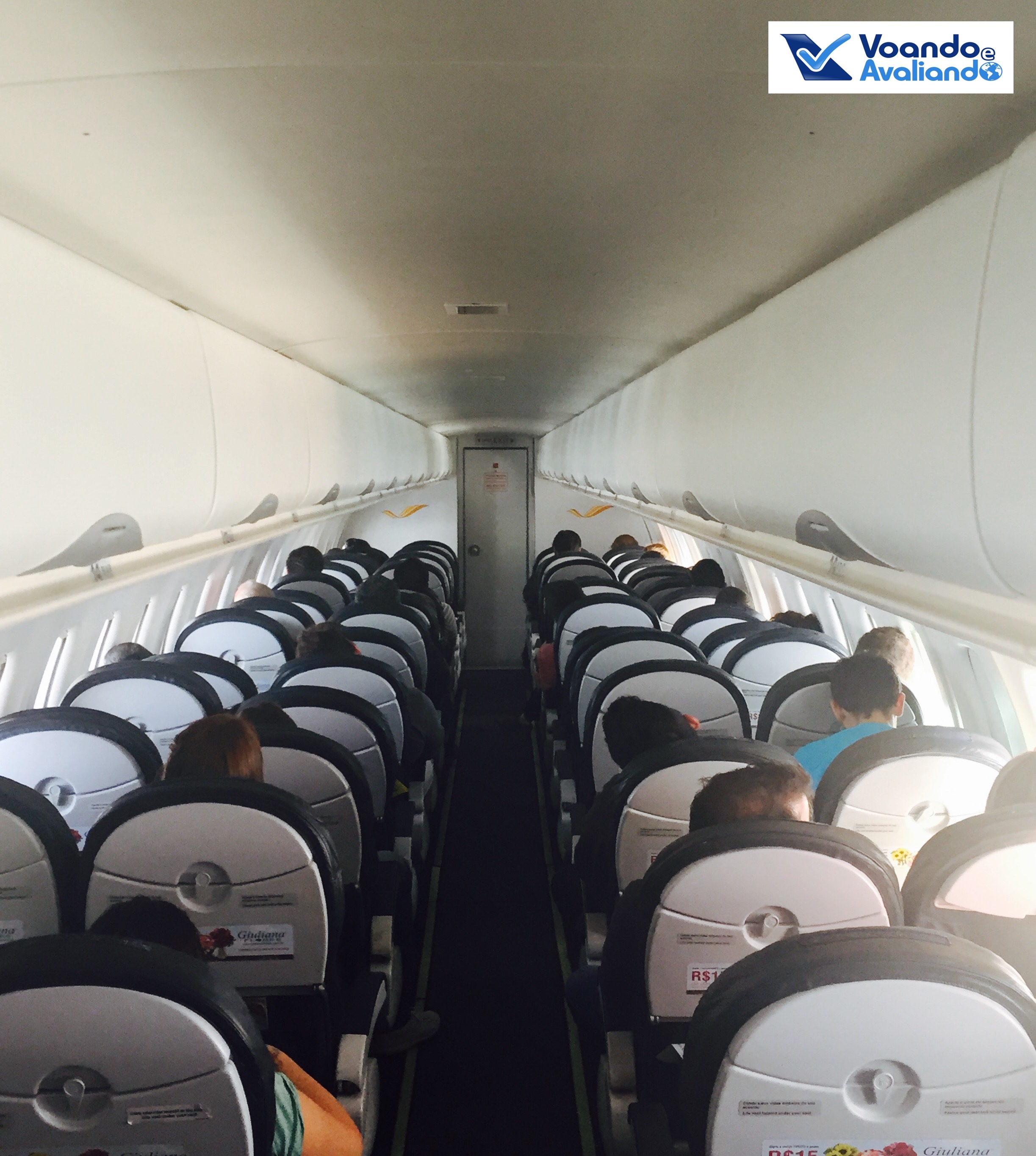 – o ATR que faria o voo tinha o prefixo PP-PTQ (apelidado de Quero-Quero – todas as aeronaves da empresa têm nome de pássaros típicos do Brasil), fabricado em 2009, tendo voado antes pela Trip e Azul, antes de ser incorporado à frota da Passaredo em janeiro de 2015; a cabine está bem conservada, são 17 fileiras na configuração 2×2, em classe única; teríamos 67 passageiros neste voo lotado; neste tipo de avião, só há 01 banheiro a bordo, na parte traseira; o meu assento era o 15A, lado esquerdo, janela