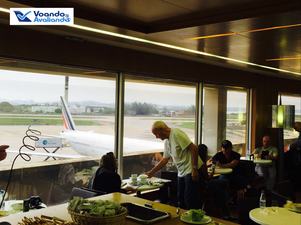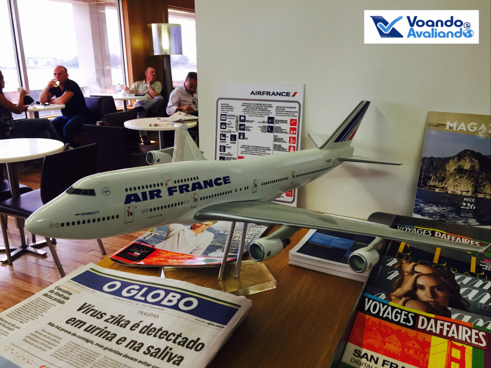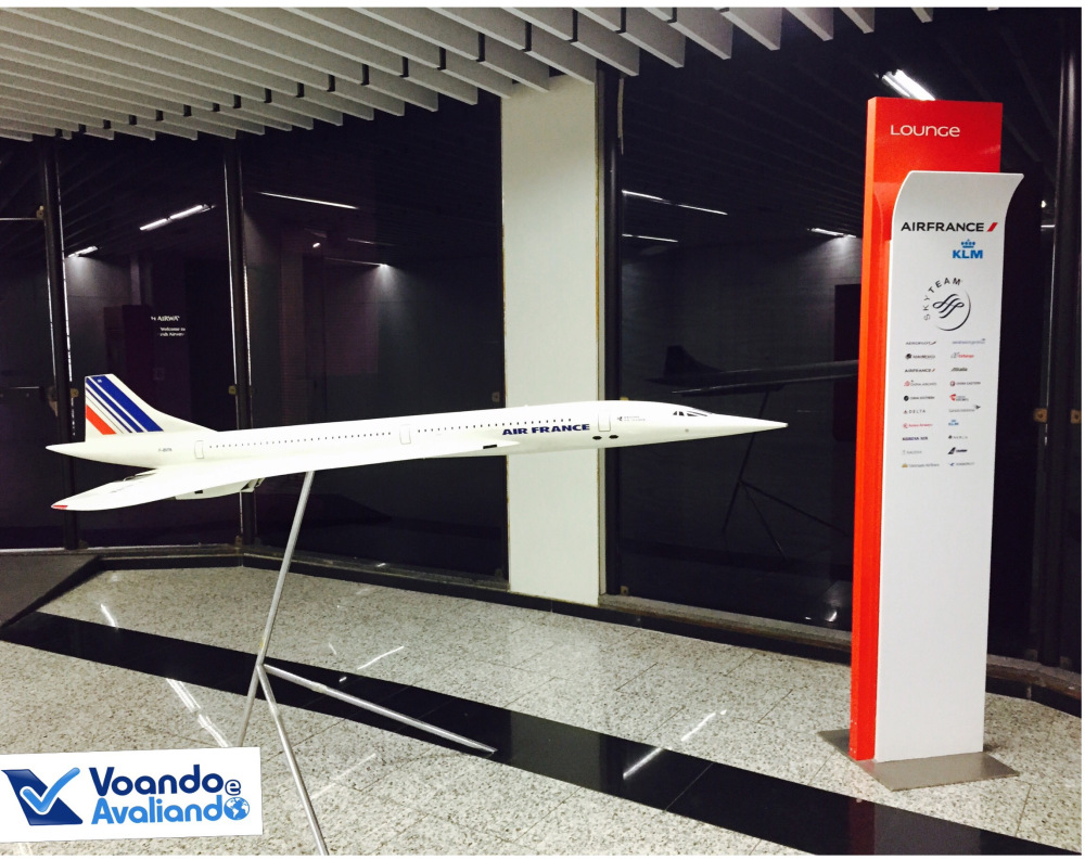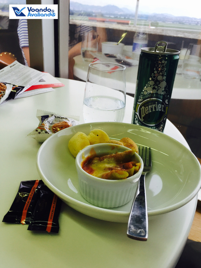 – a Alitalia está usando a VIP Lounge da Air France, parceira da aliança Sky Team; o espaço é pequeno, com uma grande maquete do lendário Concorde na entrada; ambiente aconchegante, com uma ótima visão para o pátio do Galeão, inclusive para um enorme Boeing 777-300ER da companhia francesa; a comida era simples: sopa de abóbora e penne tricolor com molho de tomate (estava um pouco “estorricado”), além de 03 tipos de mini-sanduíches; apesar de algumas opções atraentes (inclusive Champagne “original”), decidi não beber álcool, para saborear com calma a carta de vinhos a bordo da Alitalia; tomei uma água Perrier