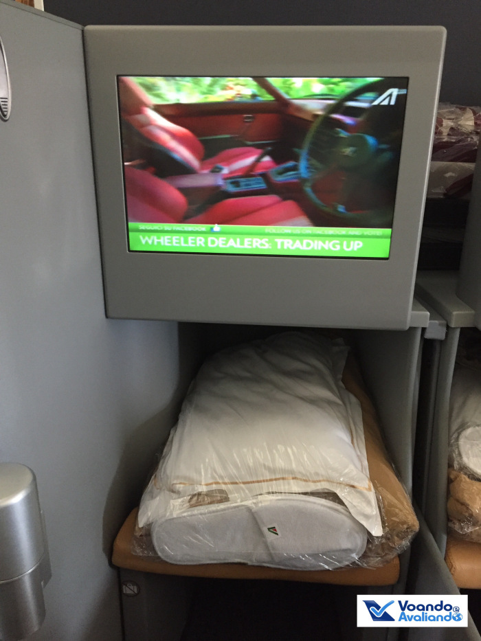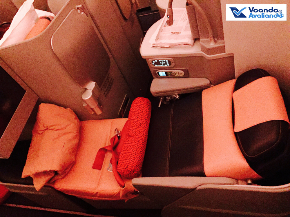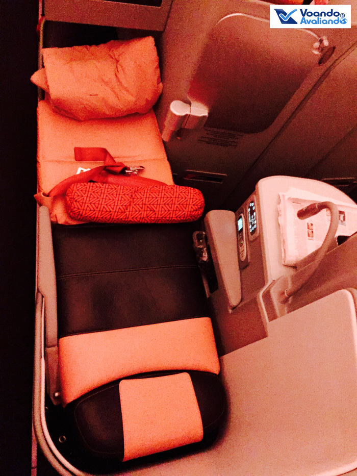 – foram 05 horas e meia de um sono bom: o assento de couro é confortável, mas achei o travesseiro pequeno, se fosse maior traria mais conforto; não precisei usar o cobertor, na verdade, nesta fase do voo achei a cabine um pouco quente