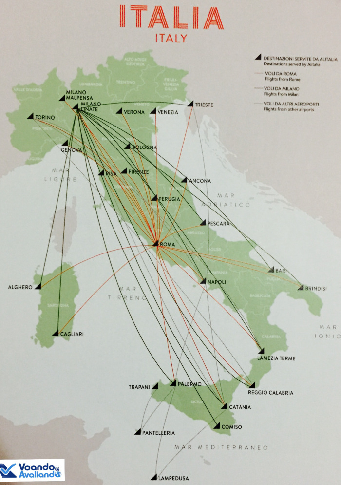 – a Alitalia oferece aos passageiros uma revista de bordo, onde informações da frota, das parcerias e das rotas operadas estão muito bem detalhadas
