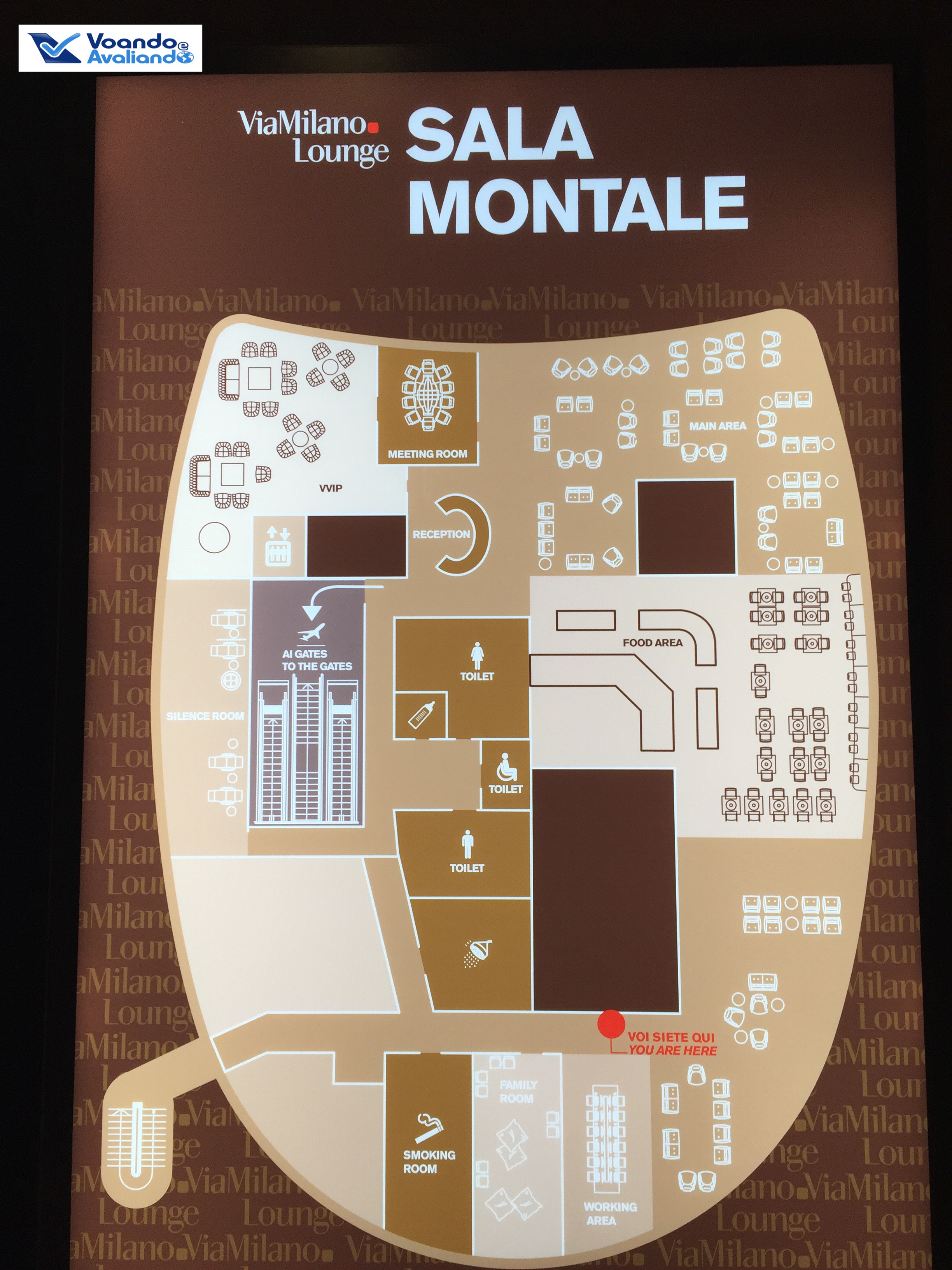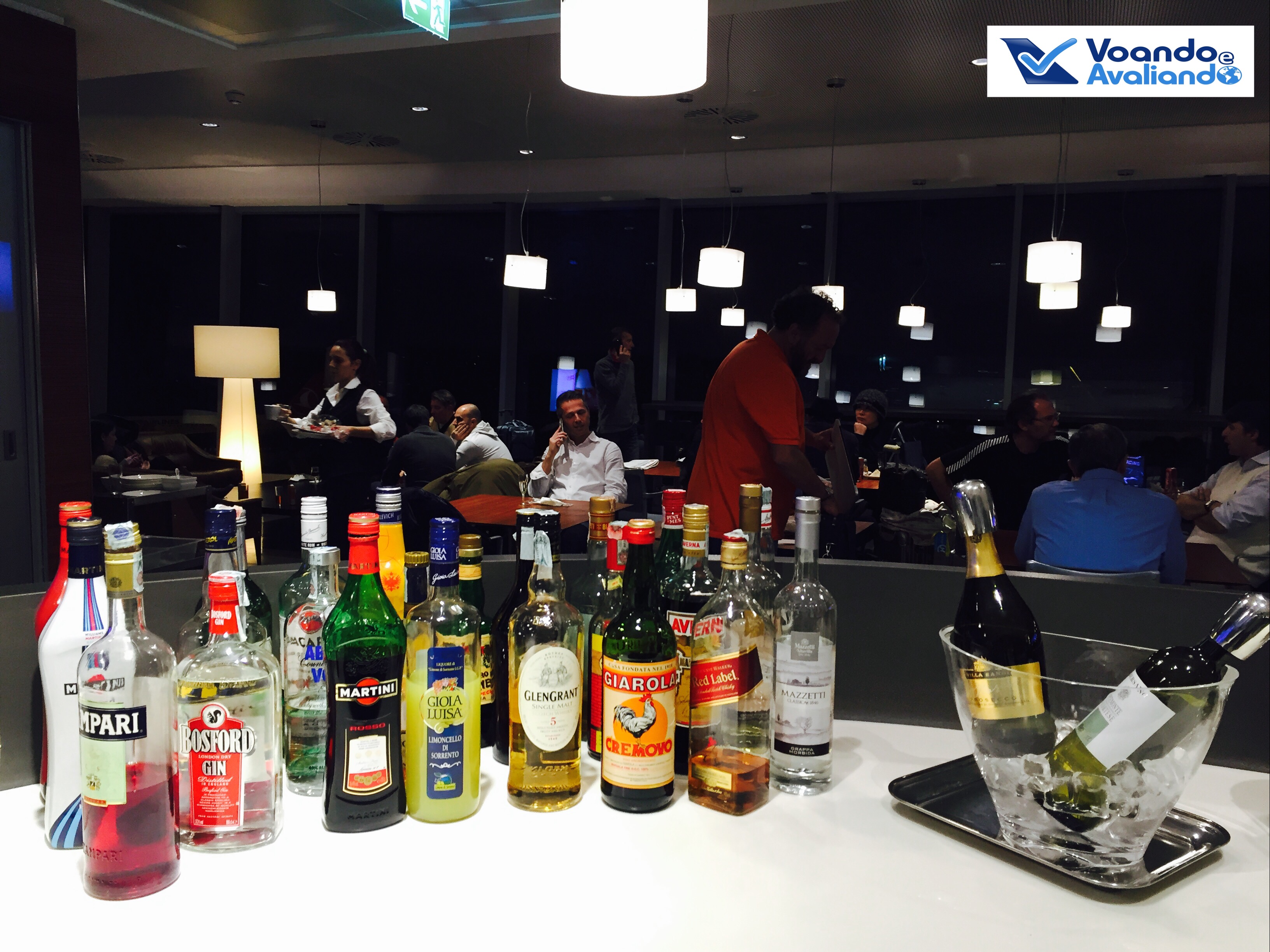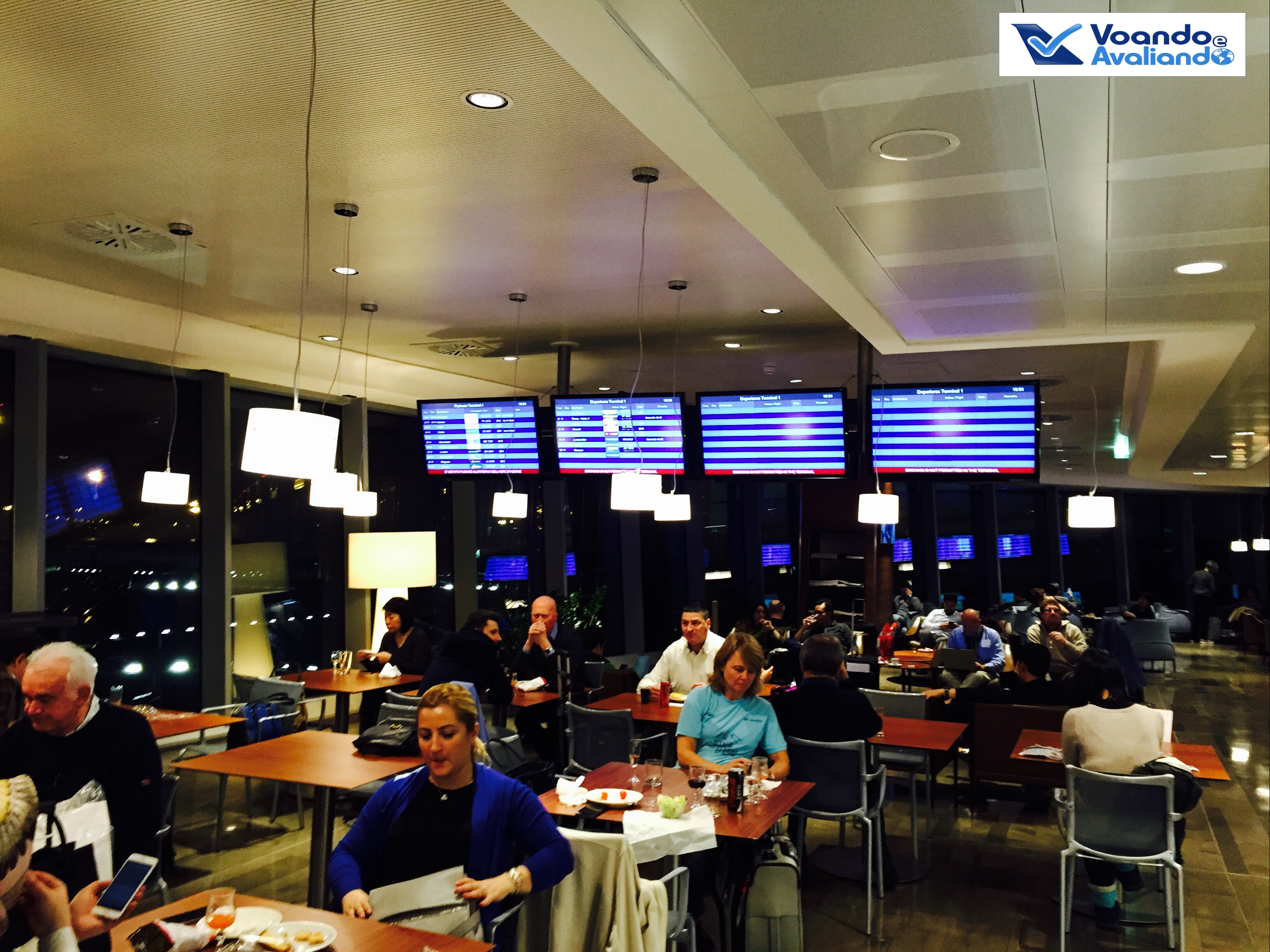 – a LAN Chile utiliza o Vip Lounge “Sala Montale”, onde chegamos por volta de 18:40h: é um espaço terceirizado, serve os passageiros de muitas companhias aéreas; o buffet oferece muitas opções de snacks e saladas, além de vasta opção de bebidas alcoólicas; há áreas reservadas para famílias e uma sala de fumantes, além de uma área dedicada para trabalho, com muitos computadores e impressora