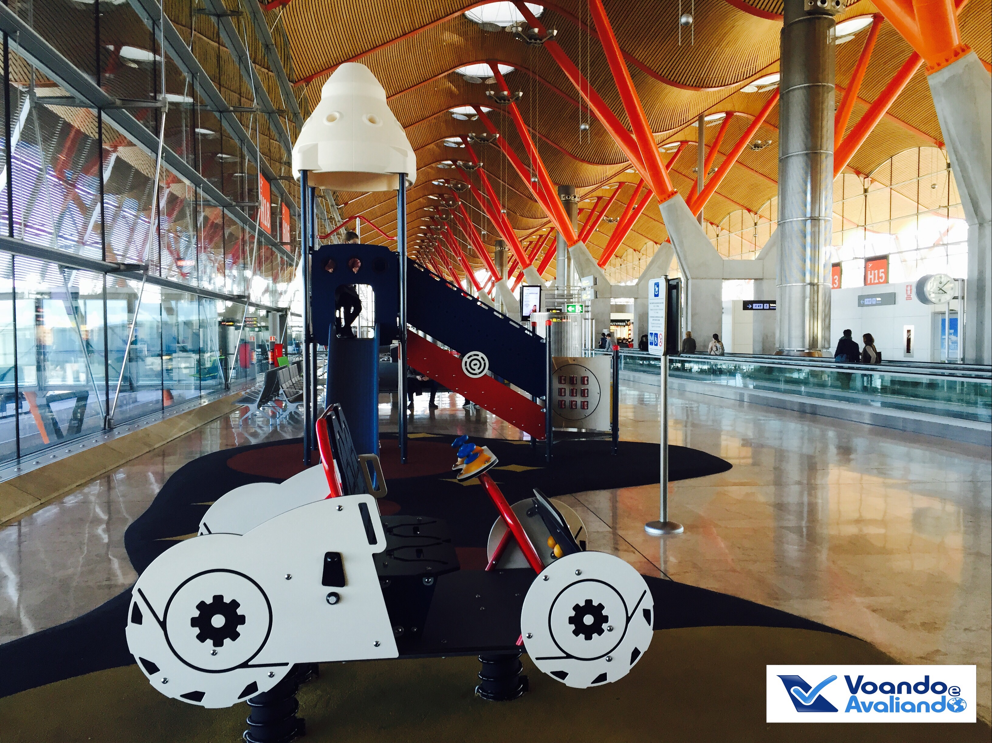 – passar pelos controles de segurança é sempre tranquilo em Madrid: muitas máquinas e as pessoas sabem bem o que fazem, não há desperdiço de tempo dos passageiros; não me canso de repetir: o T4 é muito lindo e oferece conforto aos passageiros, desde carrinhos de bebê gratuitos até centrais para carregar celulares, passando por brinquedos típicos de pracinhas no Brasil