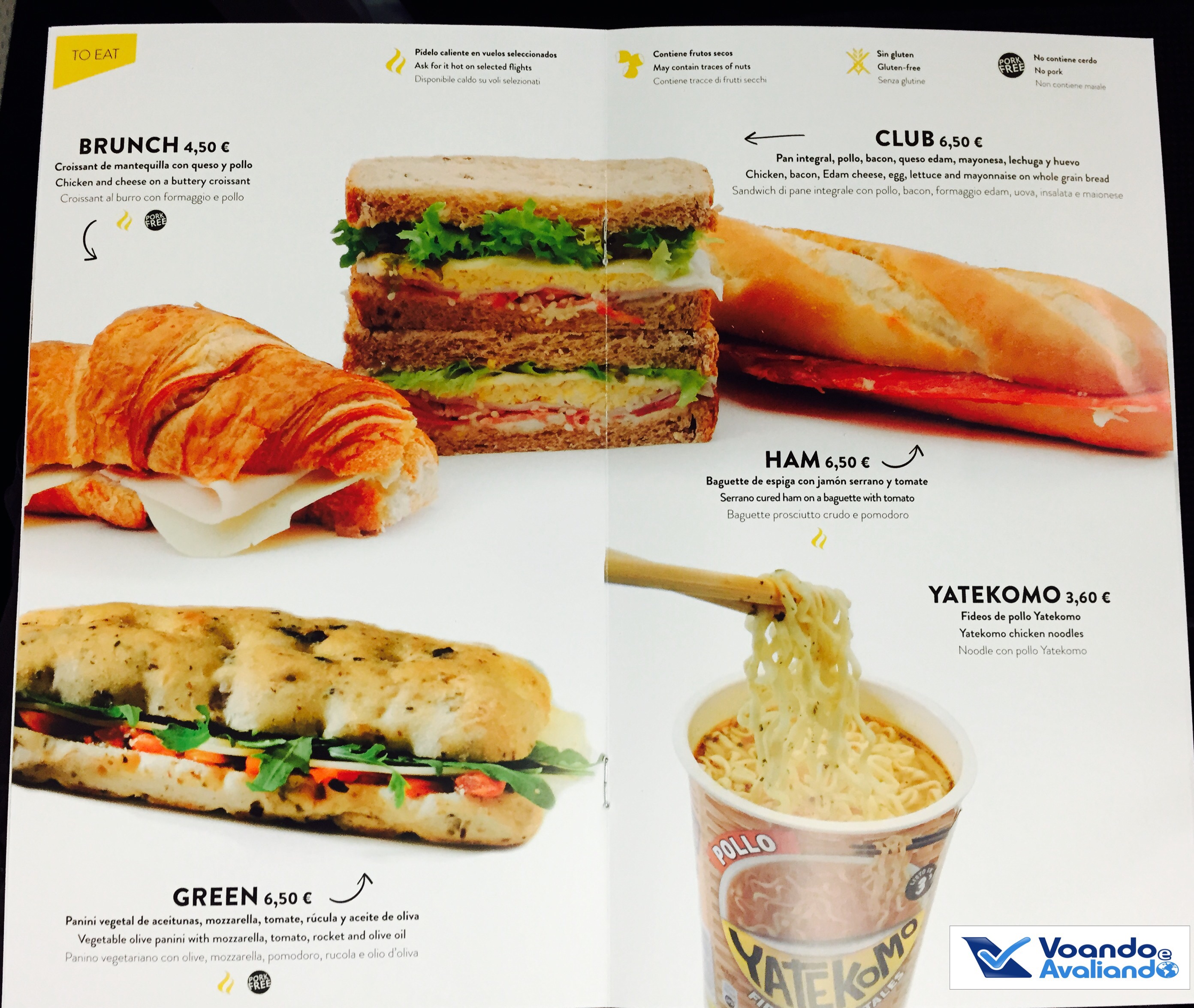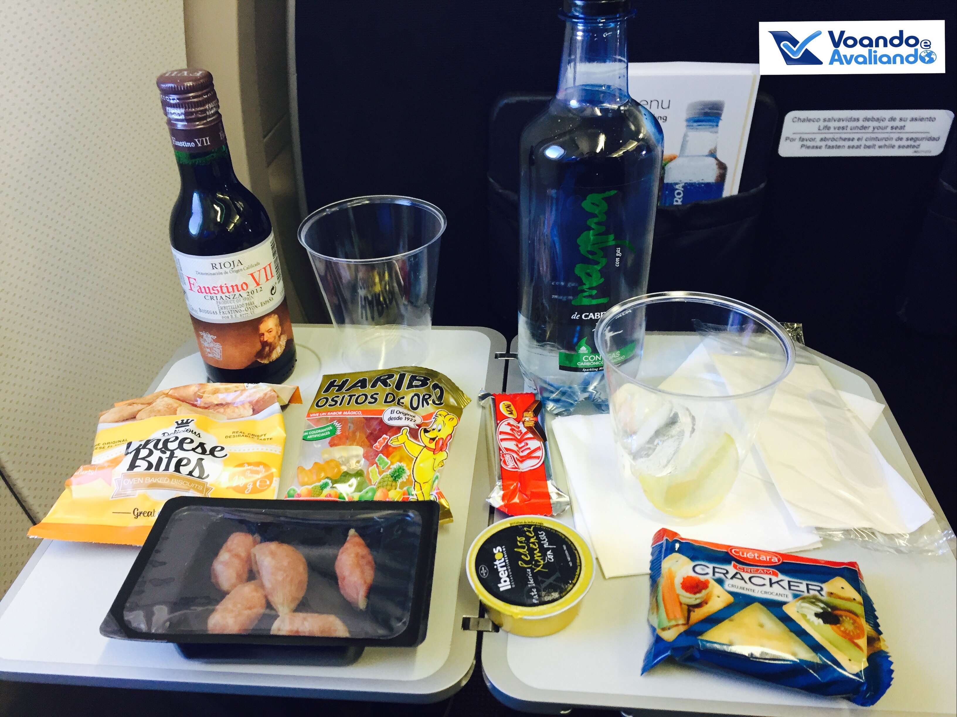– o serviço de bordo é pago (a variedade de itens à venda impressiona), com exceção dos passageiros da 1ª fileira que compraram a tarifa Execellence: além de um atendimento prioritario, eles podem escolher qualquer coisa do cardápio; decidi pela snack box, vinho tinto e água com gás; um lanche gostoso e providencial