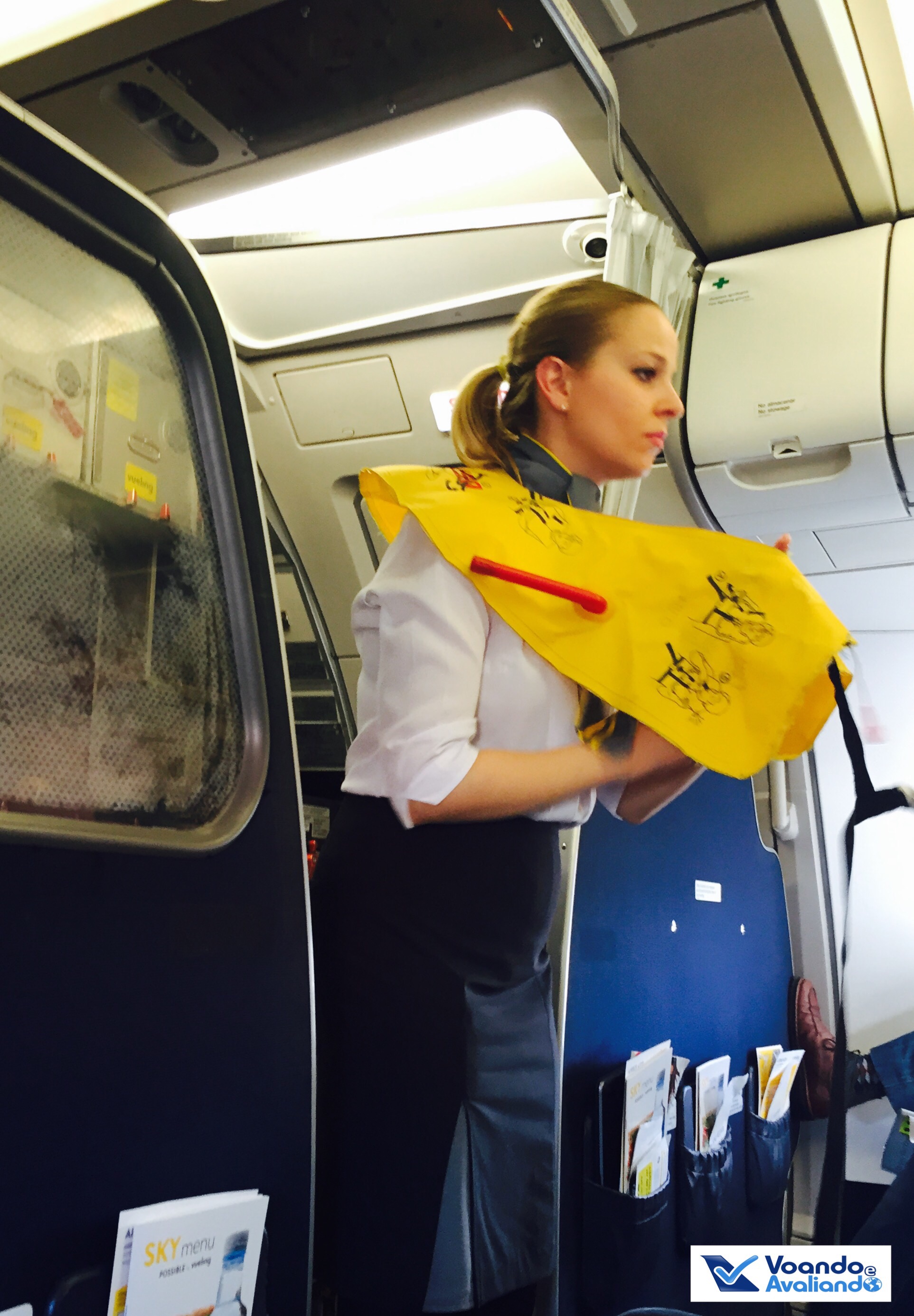 – a aeronave não tem sistema de entretenimento (nem coletivo), por isso as instruções de segurança são apresentadas aos passageiros de forma “manual”