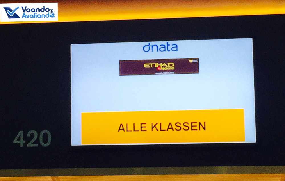 – a Etihad Regional é uma empresa muito pequena e ainda não oferece check-in antecipado pela Internet; a área de check-in é grande e organizada, fiz o meu às 17:05h: somente o guichê 420 fazia o atendimento dos passageiros do meu voo e 02 pessoas estavam à minha frente; fui atendido às 17:10h, com “pragmatismo” por uma funcionária terceirizada