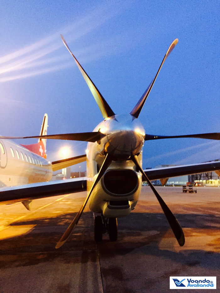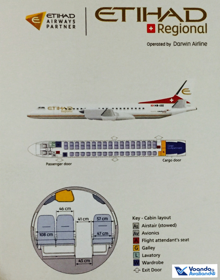 – será minha 1ª experiência com a Etihad Regional em um voo operado pela Darwin Airlines (a companhia Etihad dos Emirados Árabes Unidos usou os “petro-dólares” para comprar participação acionária em várias empresas pequenas pelo mundo: Air Berlin, Air Serbia, Air Seychelles, Aer Lingus e Darwin Airlines) e no turbo-hélice Saab 2000, de fabricação sueca (este modelo de avião foi produzido entre 1994 e 1999 e atualmente 33 unidades ainda voam)