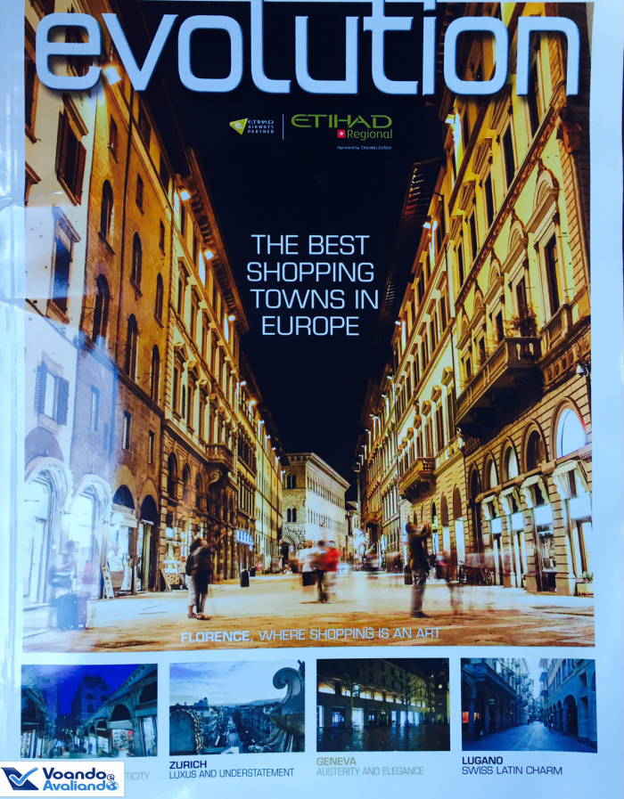 – a Etihad Regional oferece uma revista de bordo (“Evolution”), com informações sobre as rotas operadas (regular: de Genebra para Zurich, Veneza, Florença e Roma e sazonal: de Genebra para Biarritz, Ibiza, Valência, Olbia e Cagliari), parcerias com outras companhias aéreas (com Air Berlin, Air Serbia, Alitalia e Etihad para voar de Zurich para Dusseldorf, Berlin, Belgrado, Lugano e Abudhabi) e os tipos de aeronave utilizados nos voos:
