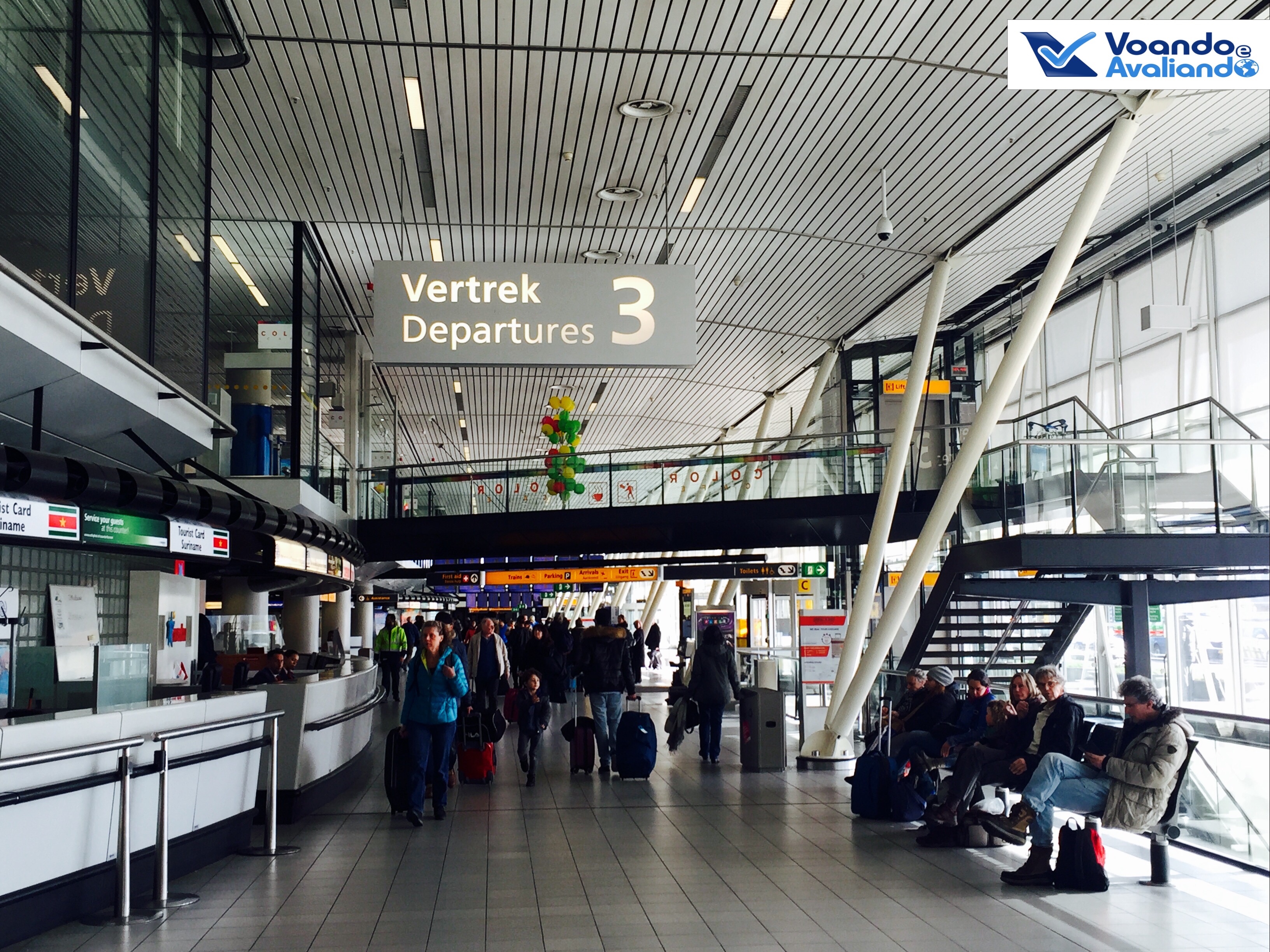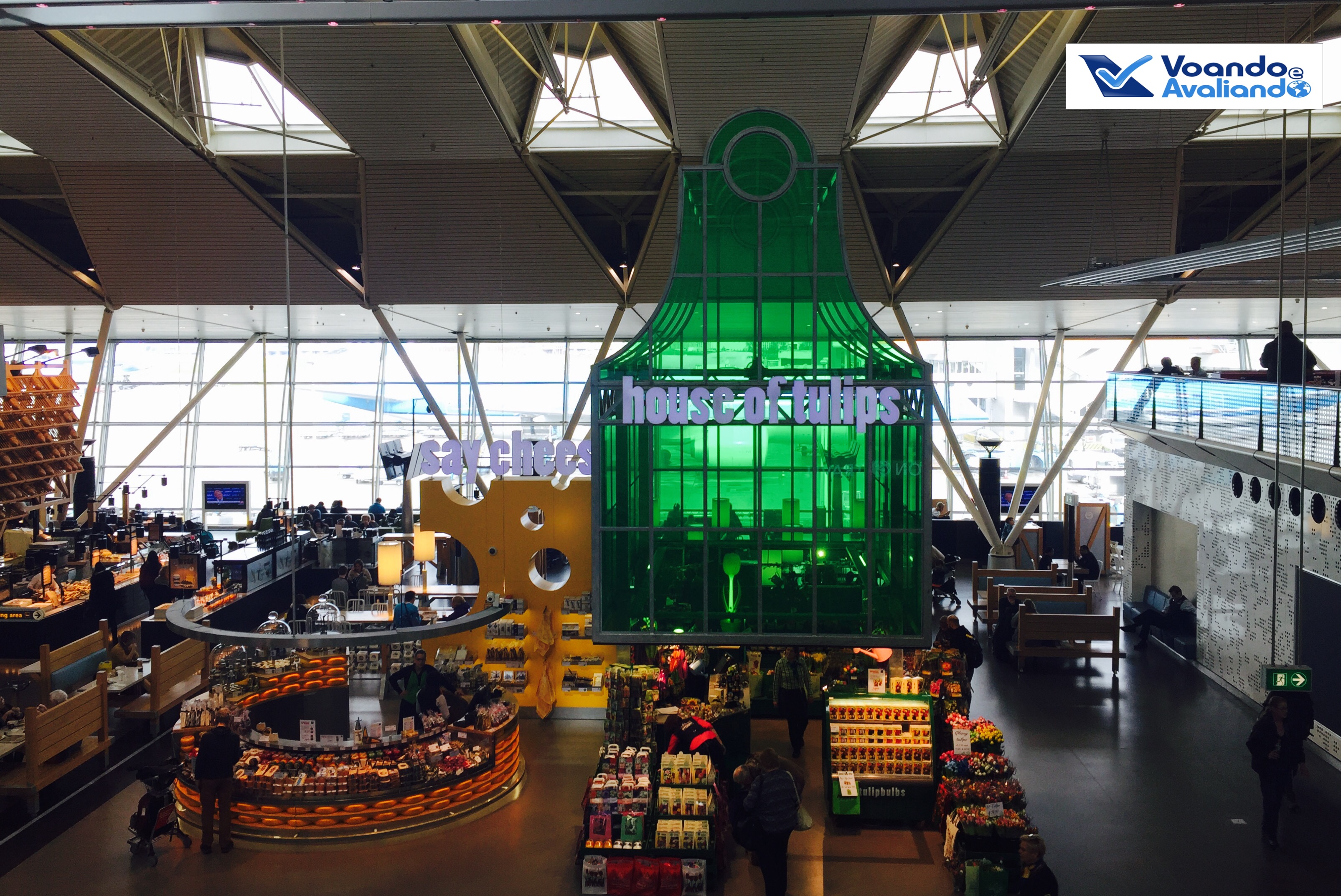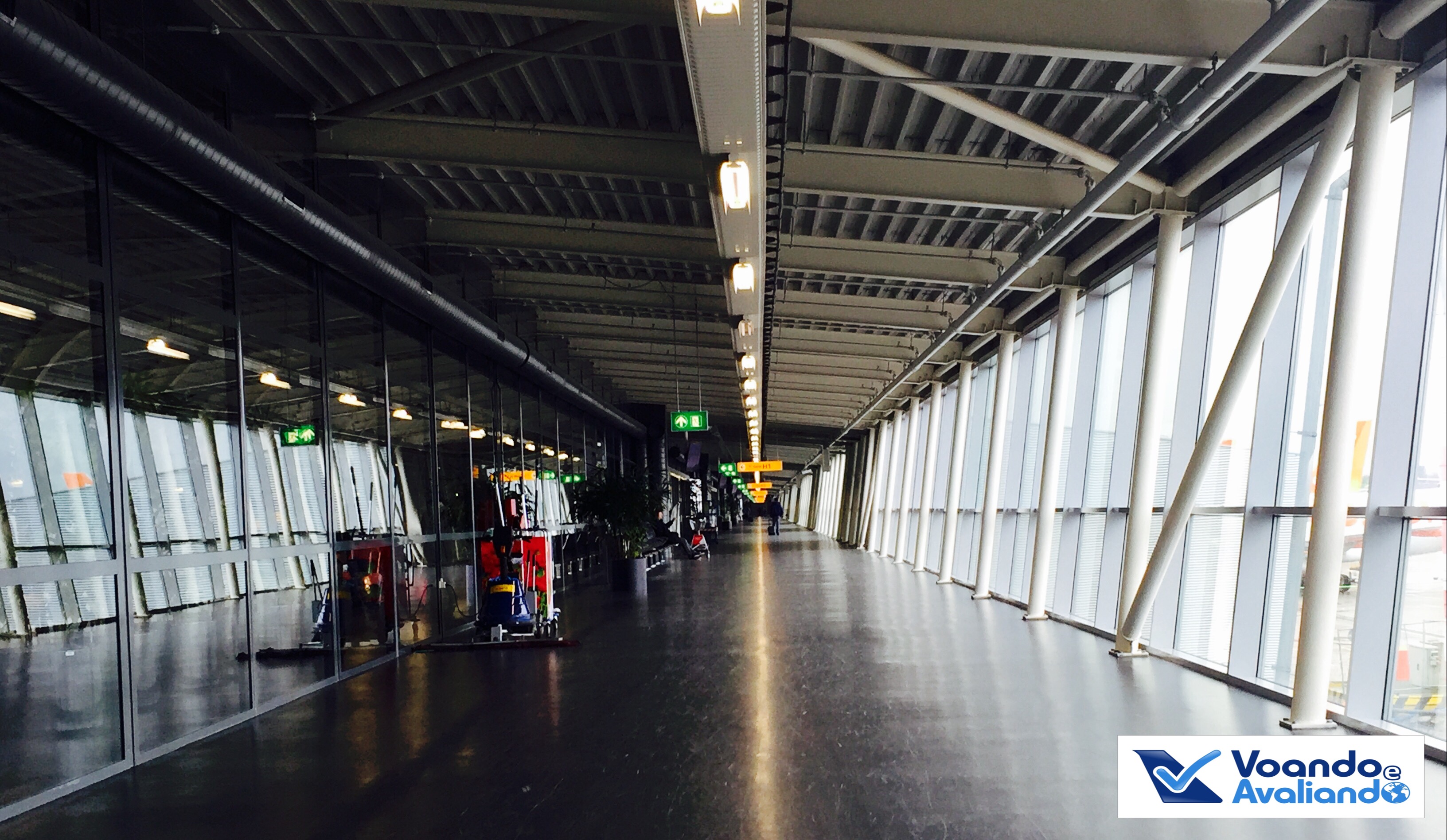 – chegar no aeroporto de Amsterdã é muito fácil, prático e econômico: o sistema de transportes da cidade é muito eficiente, é simples ir de metrô até uma estação de trem que tenha uma conexão para Schiphol (nome oficial); o custo total é de 2,90 euros (metrô) + 4,00 euros (trem); há uma grande estação dentro do terminal: ao sair do trem, pega-se uma escada rolante e pronto, você já está dentro do aeroporto; com o voo marcado para 14:10h, cheguei por volta de 12:15h