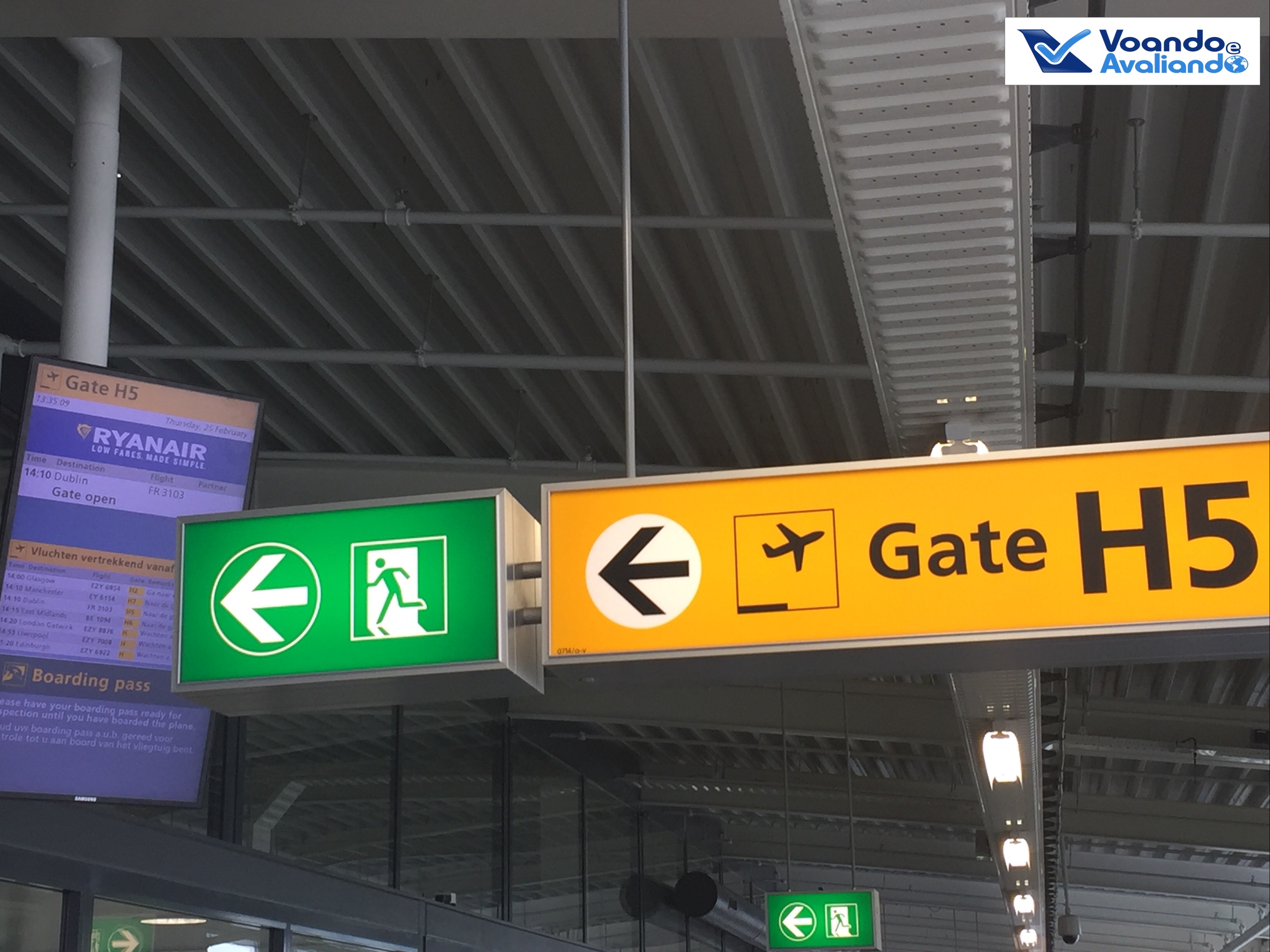 – a Ryanair utiliza o Terminal 3 de Schiphol, pois um voo para Irlanda é considerado para fora da zona da Comunicade Européia, portanto, é o mesmo terminal dedicado para os voos com destino aos Estados Unidos e Ásia, ou seja, muitos aviões de grande porte estão estacionados no pátio