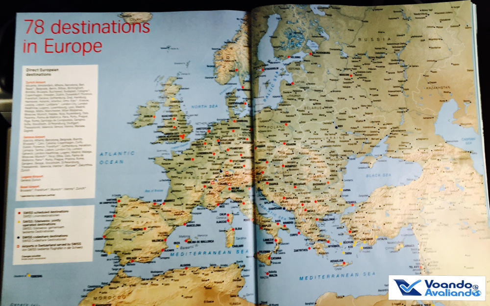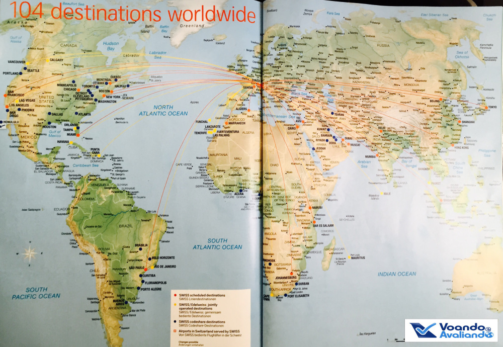 – será meu 1º voo com a SWISS, empresa eleita a 14ª melhor do mundo em 2015 e que faz parte do grupo da alemã Luthansa (além da Austrian Airlines e Brussel Airlines) e também da aliança global Star Alliance, por isso, poderei acumular pontos para o Programa Amigo da Avianca Brasil, no qual tenho o status Gold Member, o que me dá direito a utilizar a Sala VIP e embarque preferencial; a Swiss opera atualmente 94 aeronaves, voando para 104 destinos em 49 países