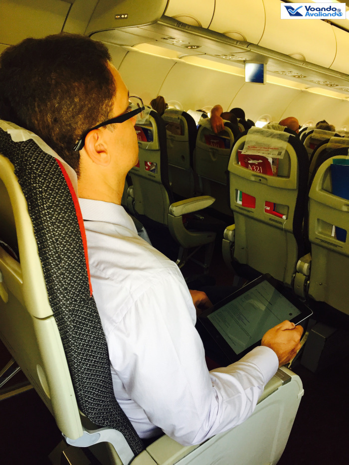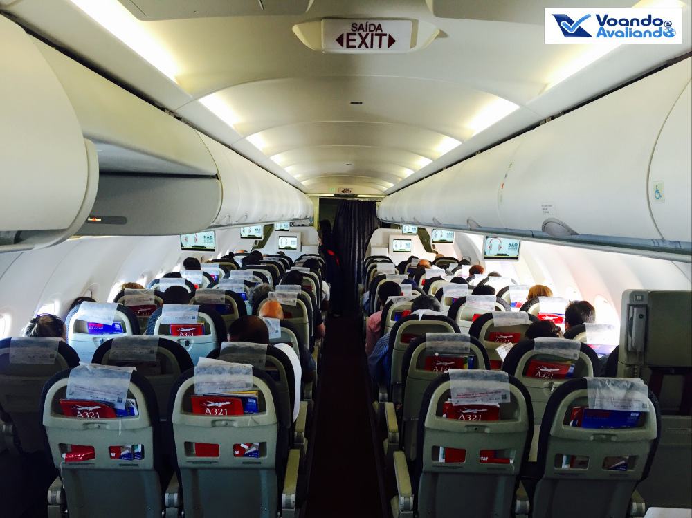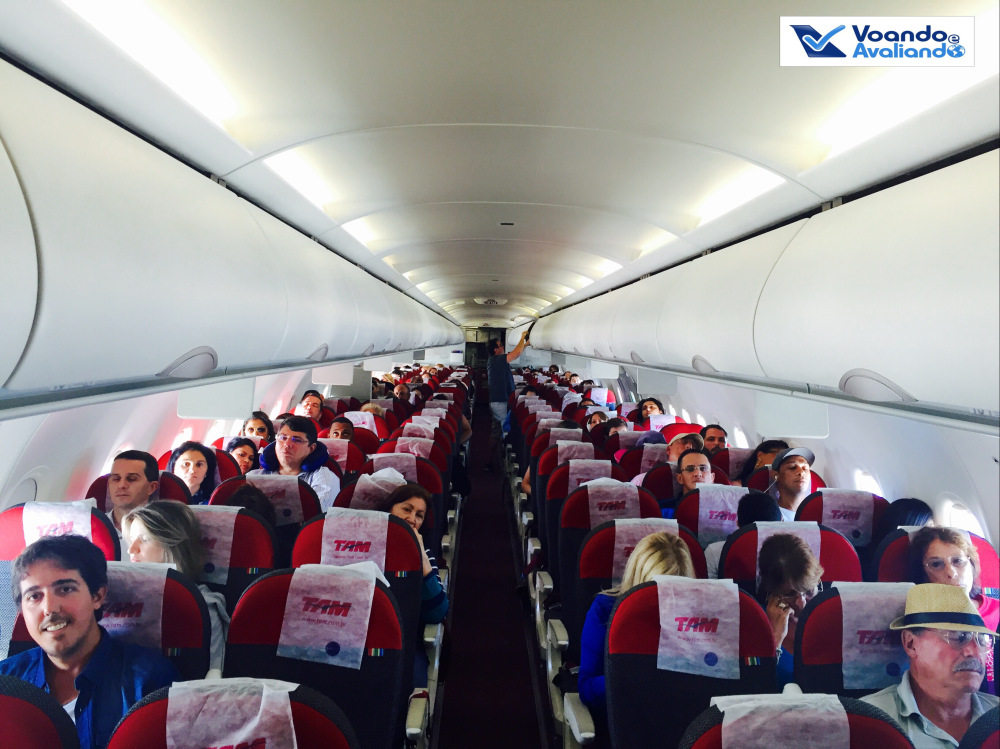 – o Airbus A321 dedicado para este voo tinha o prefixo PT-MXJ e foi entregue novo à TAM em março de 2013; está muito bem conservado e já traz o novo revestimento de poltronas que a companhia começou a instalar em agosto de 2015; este modelo da Airbus é o maior avião de corredor único ainda em produção: são 38 fileiras, podendo acomodar até 220 passageiros; neste voo, a ocupação estava em 60%