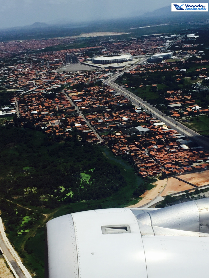 – o pushback foi feito às 13:02h e decolamos com pontualidade britânica às 13:08h, depois das 02 turbinas empurrarem o A321 por 28 segundos; sentado na janela e com o celular ligado, consegui tirar algumas fotos interessantes, inclusive da Arena Castelão, construída para a Copa do Mundo de 2014