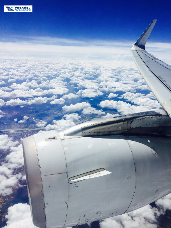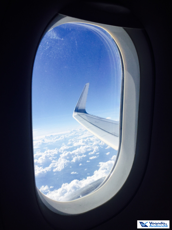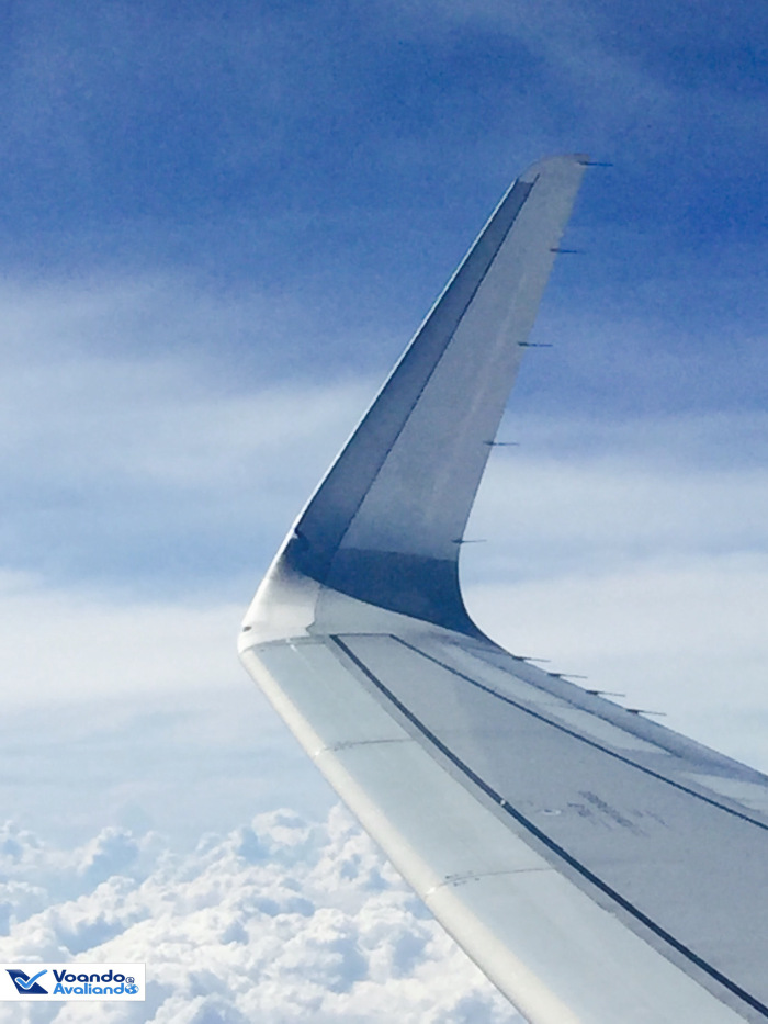 – viajar nesta hora do dia oferece a oportunidade de tirar boas fotos da turbina e da asa do avião, tendo como pano de fundo nuvens e o céu azul; voamos a uma velocidade de 835 km/h e a uma altitude de 10.300 metros