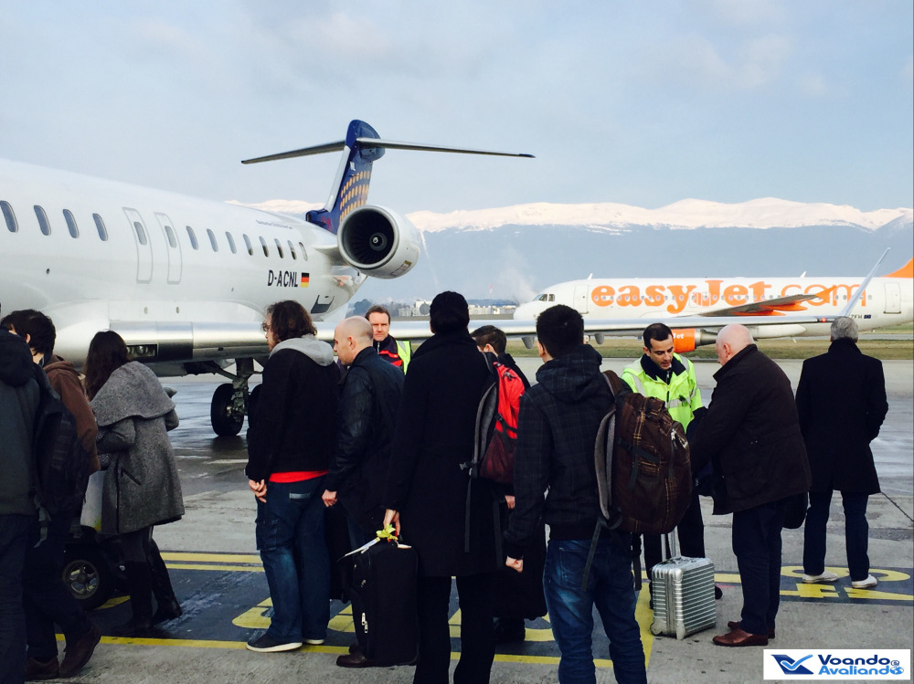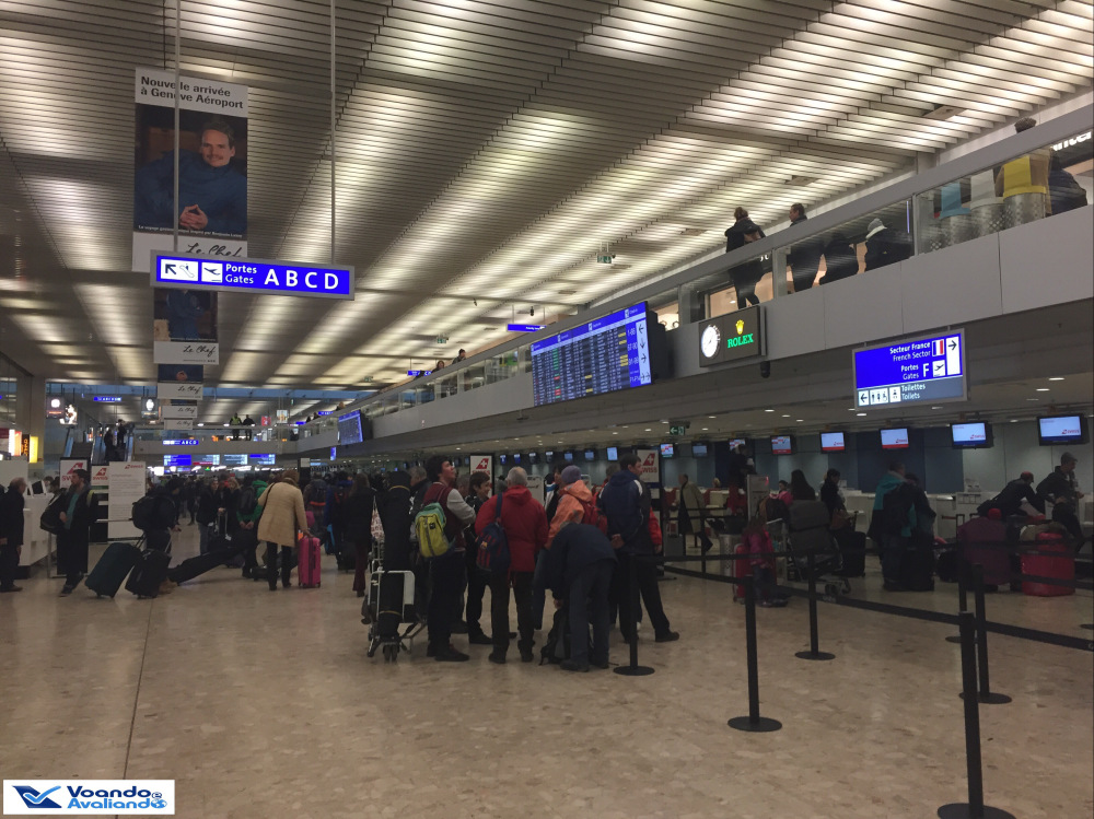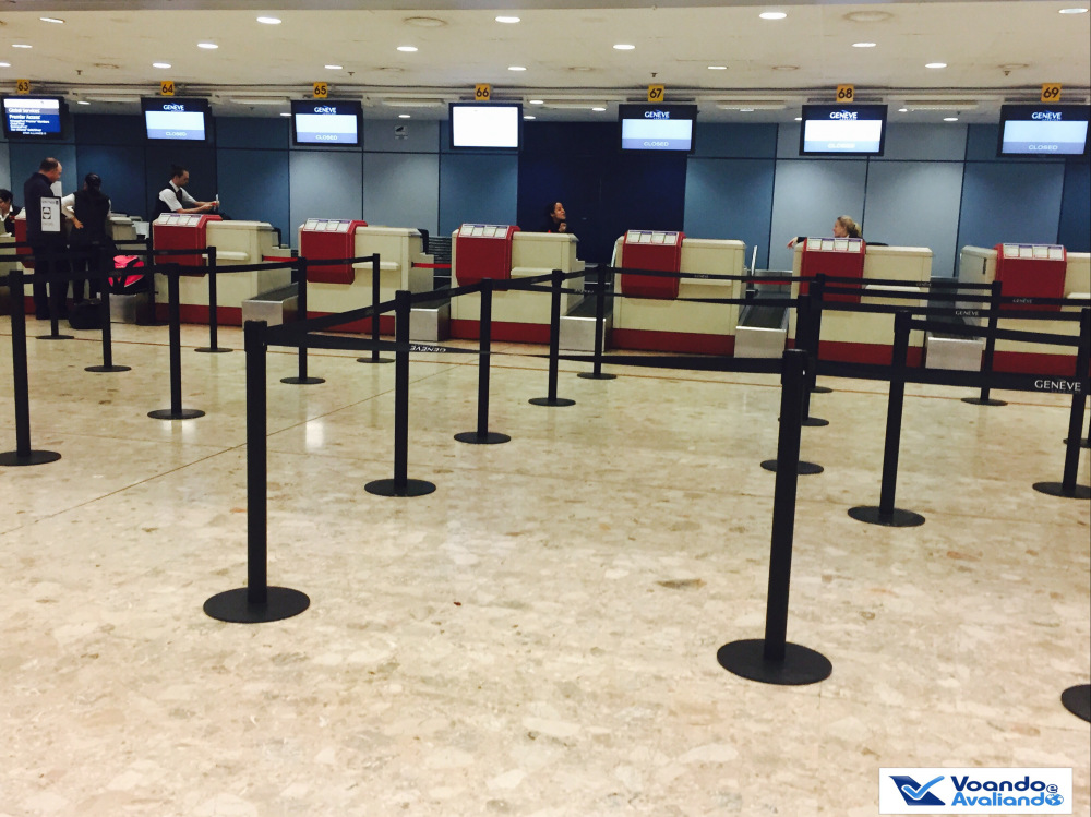 – fiz o check-in pela Internet 03 dias antes da data do voo, depois de receber um “alerta” por e-mail; estava hospedado nos arredores do Aeroporto de Genebra, com voo marcado para 09:15h, peguei uma van oferecida pelo hotel por volta de 08:00h e em menos de 10 minutos cheguei no terminal, onde apenas 01 guichê da Eurowings estava funcionando para atendimento dos passageiros; a estrutura do aeroporto é antiga e pequena; o interessante é que parte dele fica em território francês, há um posto de fronteira dentro dele, os voos com destino às cidades da França partem de lá