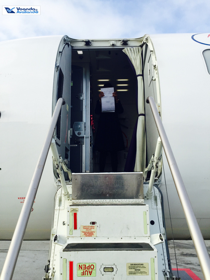 – apenas 02 Comissárias trabalhariam neste voo; os anúncios da tripulação foram feitos em 03 línguas: francês, inglês e alemão; a Chefe de Cabine informou que teríamos 01 hora de voo até Dusseldorf, com tempo bom em rota