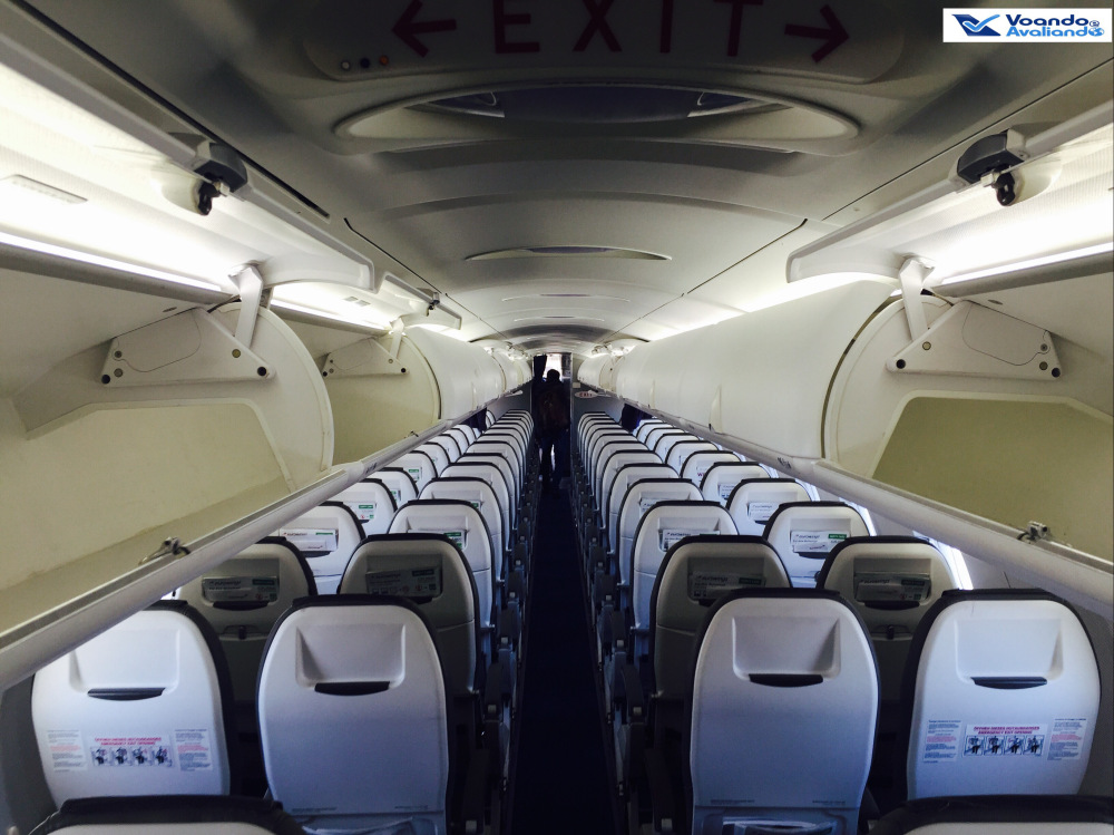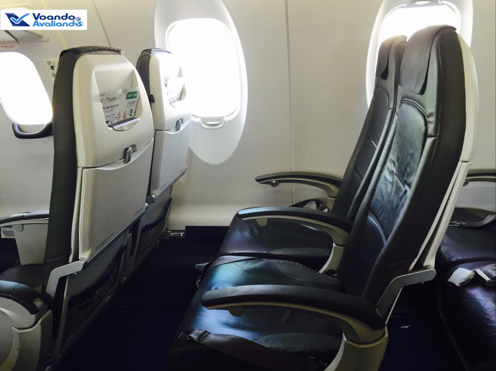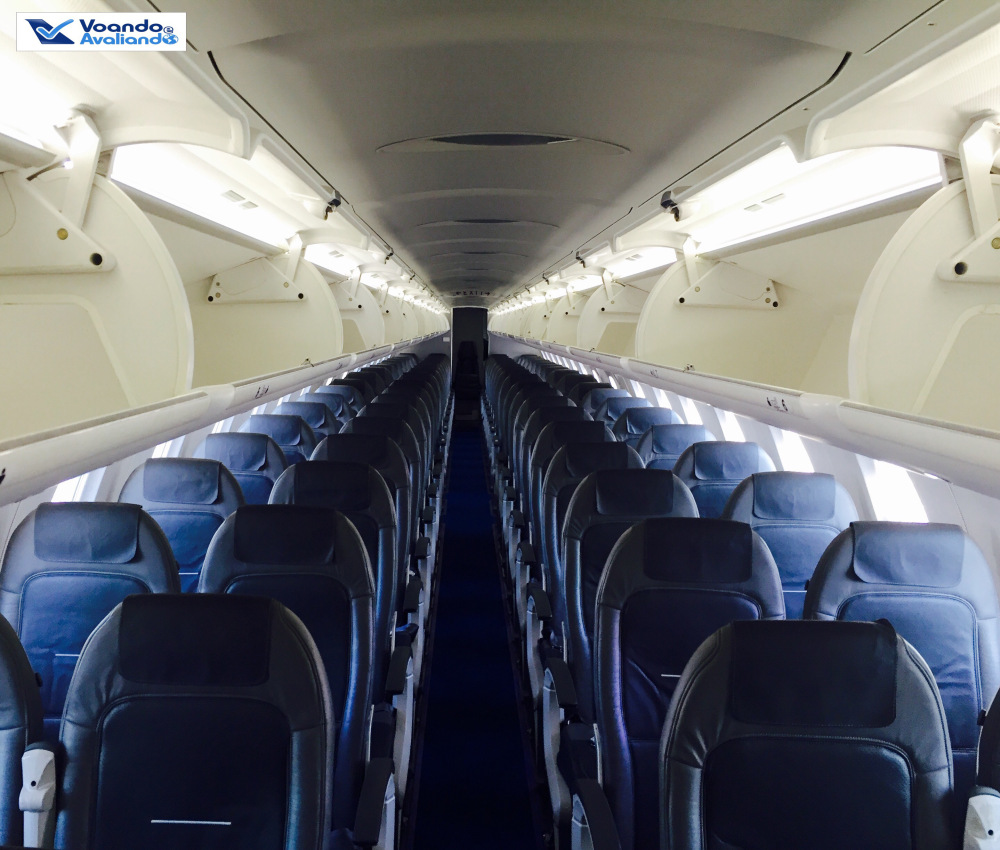 – a configuração deste avião regional é de 02 poltronas de cada lado (2×2); as 04 primeiras fileiras são dedicadas para os passageiros que compraram a tarifa “Best” e oferecem mais espaço para as pernas