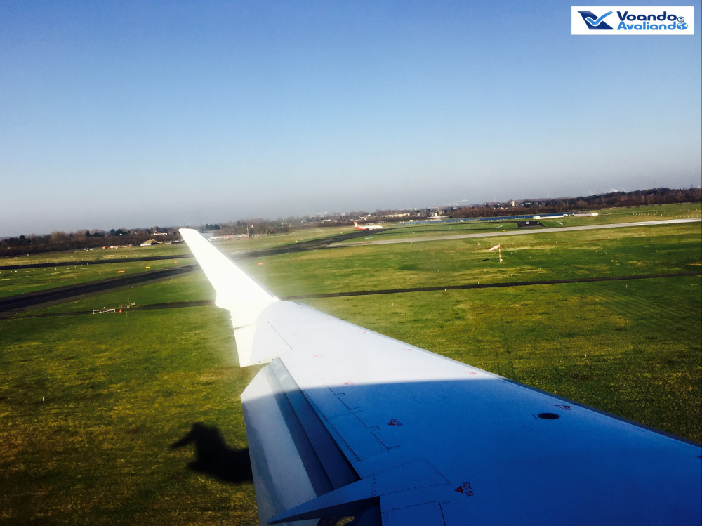 – o trem de pouso foi armado às 09:58h e tocamos o solo alemão de Dusseldorf às 10:02h, de forma seca e segura; estacionamos novamente em uma posição remota; depois de pegar um ônibus, cheguei no terminal às 10:15h