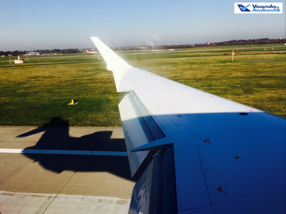 – hora da partida: andamos para a frente (sem necessidade de trator para o pushback) às 08:57h e decolamos às 09:04h, depois que as 02 turbinas General Eletric funcionaram em potência máxima por 25 segundos