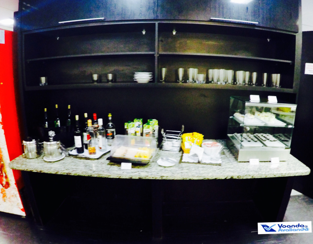 – no buffet servido, s seguintes opções eram oferecidas: salada, frutas (maçã e goiaba), minipizza, mini-pastel, escondidinho de queijo e presunto, 02 tipos de sanduíche – queijo e peito de peru defumado) e 03 tipos de doces para sobremesa; tudo muito simples, sem apelo visual algum; para beber, sucos (laranja, pêssego e goiaba), vinho tinto e branco (nacional) algumas opções de destilados