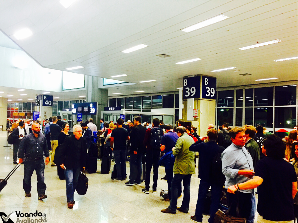 – já na área do controle de passaporte, a realidade era outra: muita confusão e bagunça, cheguei às 19:55h e fiquei na fila até 20:20h; a Polícia Federal implementou um sistema eletrônico de leitura de passaporte (catracas que fazem leitura digital do passaporte, uma foto é tirada do passageiro, que é liberado em seguida), mas que sofreu uma pane naquele momento