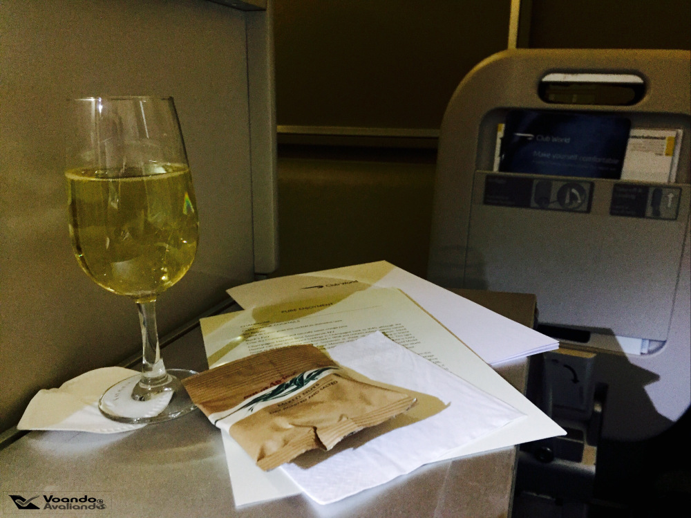 – o serviço de bordo foi iniciado às 23:10h, mas só fui atendido 20 minutos depois; para começar, um champagne, que estava refrescante e delicioso, com um pacotinho de nuts
