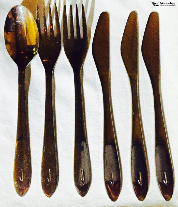 – a minha escolha de Prato Principal foi o filé: estava excelente, mas quem gosta de carne mal passada (não é o meu caso!) não ia gostar; o ragu de cogumelos em cima da batata assada estava delicioso; a delícia de duplo chocolate com calda de frutas vermelhas servida como sobremesa estava muito boa; enfim, foi uma ótima refeição, que foi encerrada às 00:55h; a atitude da tripulação foi exemplar durante o serviço de bordo: a comissária Lynn me atendeu com prazer, com postura sempre atenciosa; os talheres  de ferro trazem a marca da Brisith