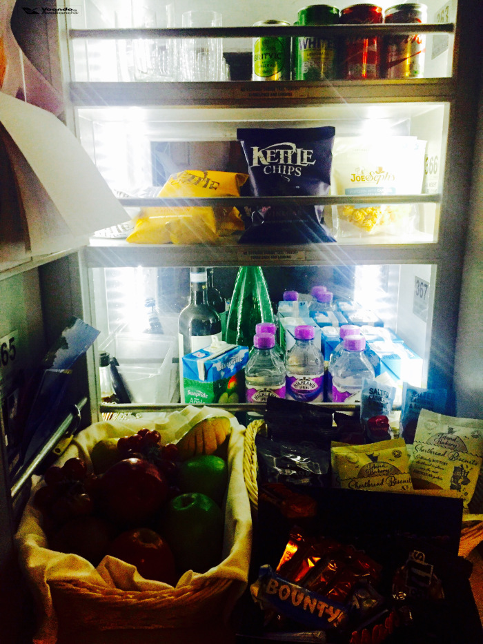 – dormi um sono bom até 05:10h, levantei para ir ao banheiro, que estava limpo e cheiroso, a tripulação se esforça para deixá-lo sempre assim; passando pela “cozinha”, descobri que a British monta um mini-bar perto para os passageiros da Business Class: bem variado, gostei; deitei de novo e cochilei até 06:40h