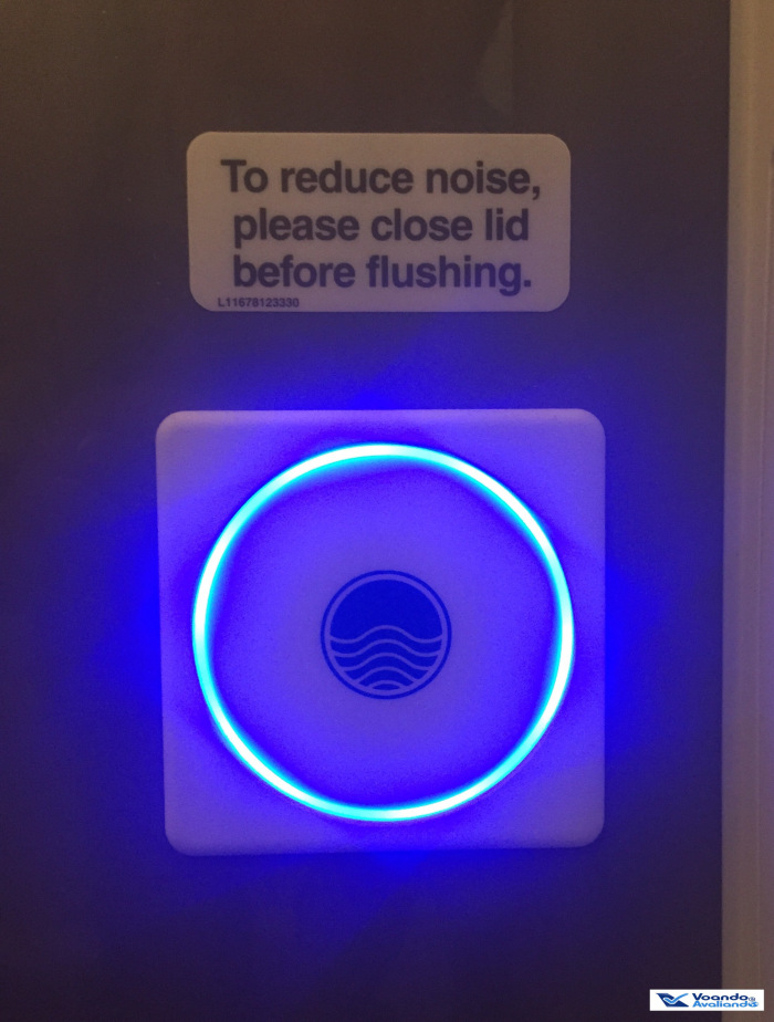 – aproveitei para conhecer os banheiros (são 02) que também ficam na parte da frente; são simplesmente enormes, com tampa do assento revestida de couro; me chamaram atenção o botão de descarga e a torneira eletrônica; além disso, eles estavam limpos e cheirosos