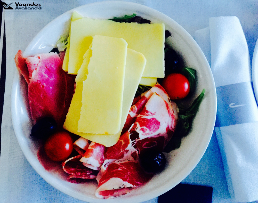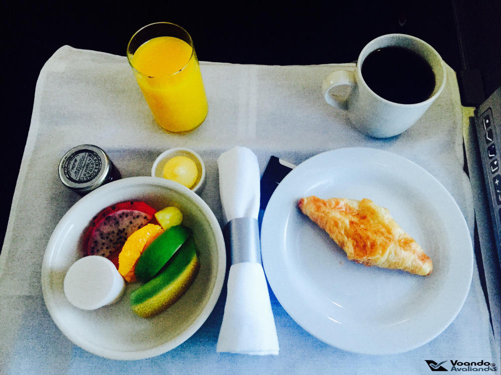 – eram 06:20h quando o café da manhã começou a ser servido para quem já estava acordado; a British serve esta refeição em 02 fases: de entrada, frutas e croissant com geléia (repeti a opção do voo Rio-Londres), acompanhados de suco de laranja e café preto; depois um prato de queijos e presunto parma; foi uma refeição matinal providencial