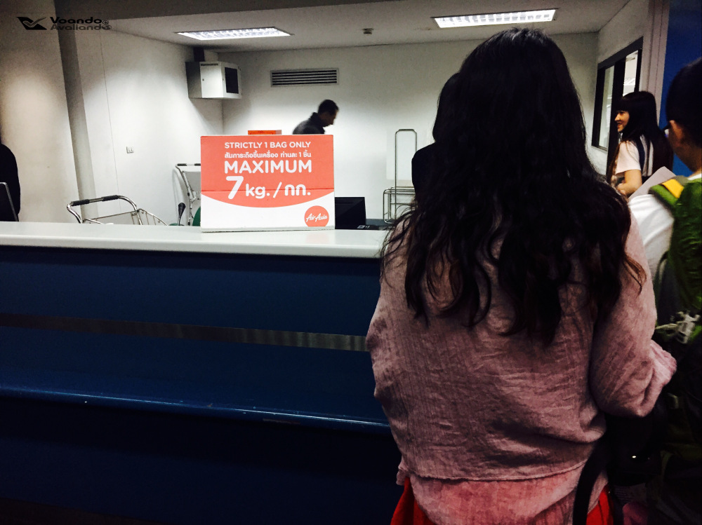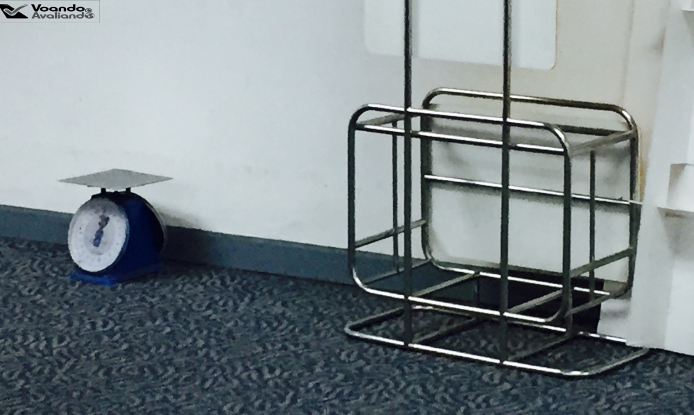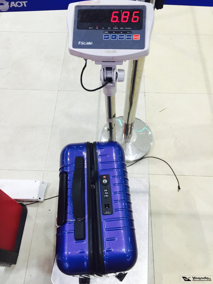 – eu estava com uma mala de bordo de rodinhas e mais uma mala (na verdade, uma bolsa grande) que pretendia despachar, mas eu não tinha muita ideia do peso delas; bem em frente aos guichês de check-in da AirAsia há uma balança digital e fui lá para ver quantos quilos eu estava carregando