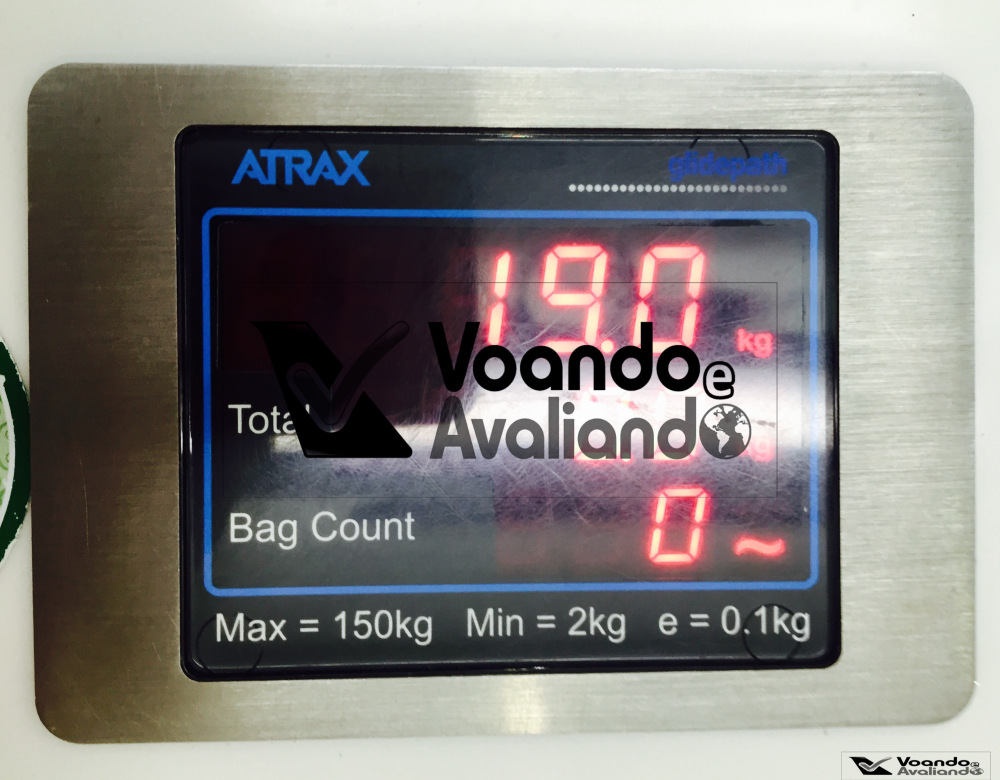 – aí começou um drama: a mala de mão estava com mais de 10 quilos, 03 a mais do que o permitido; comecei a transferir coisas para a mala grande; além disso, tive que colocar algumas coisas (carregador portátil, carteira e documentos) no bolso da bermuda para aliviar ainda mais o peso; finalmente consegui deixar a mala com menos de 07 quilos