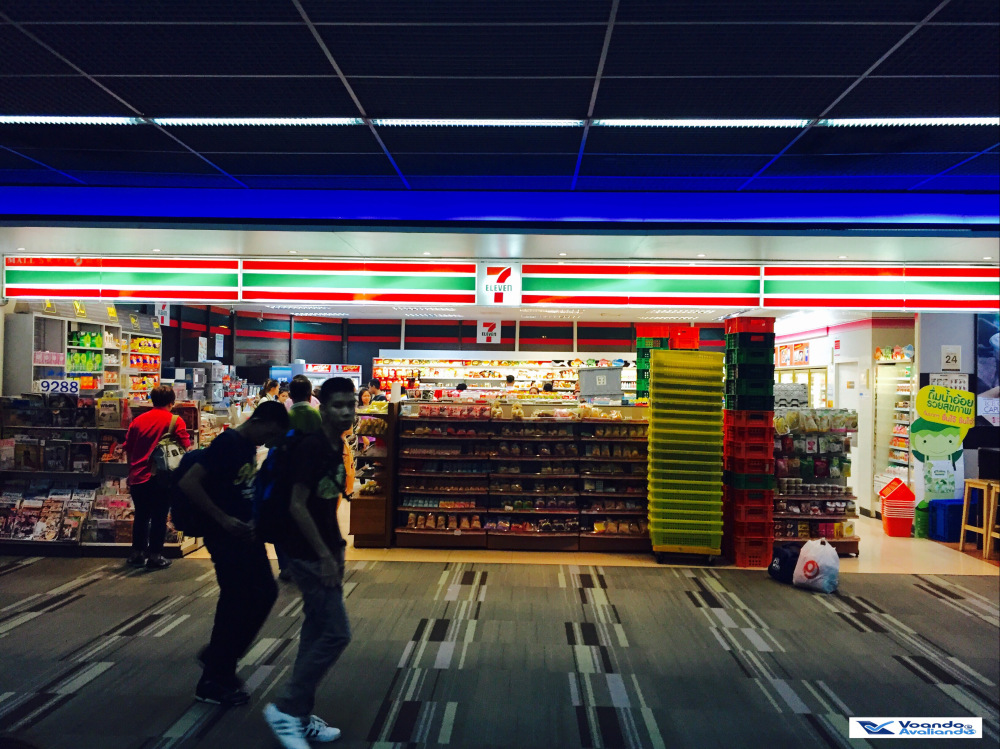 – mais uma vez, a estrutura do aeroporto é ampla, são muitas lojas e lanchonetes e, obviamente, tinha uma 7Eleven: é impressionante a quantidade de filiais que este mini-mercado tem na Tailândia