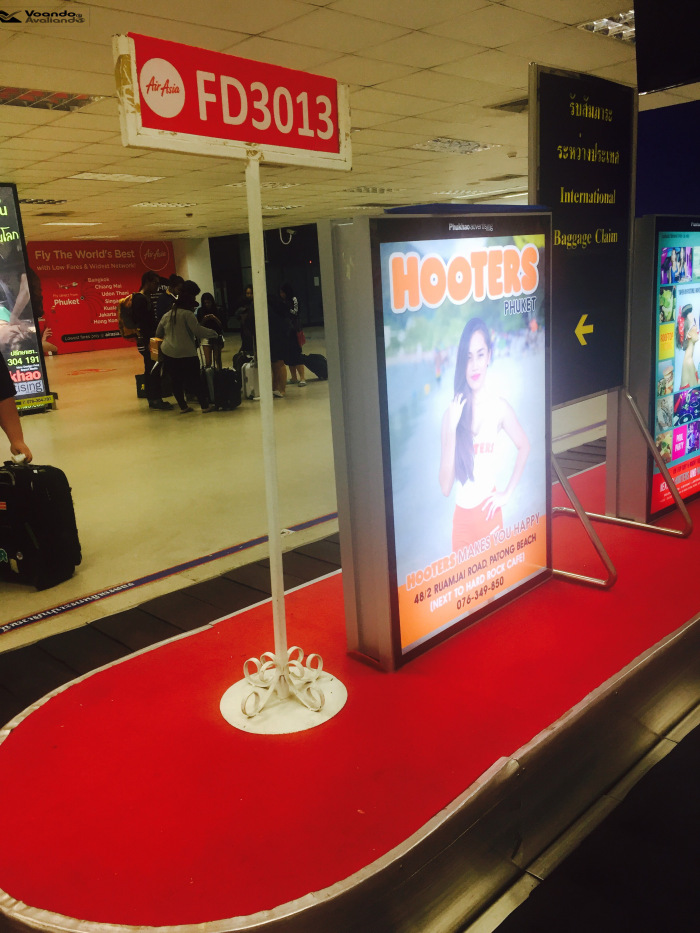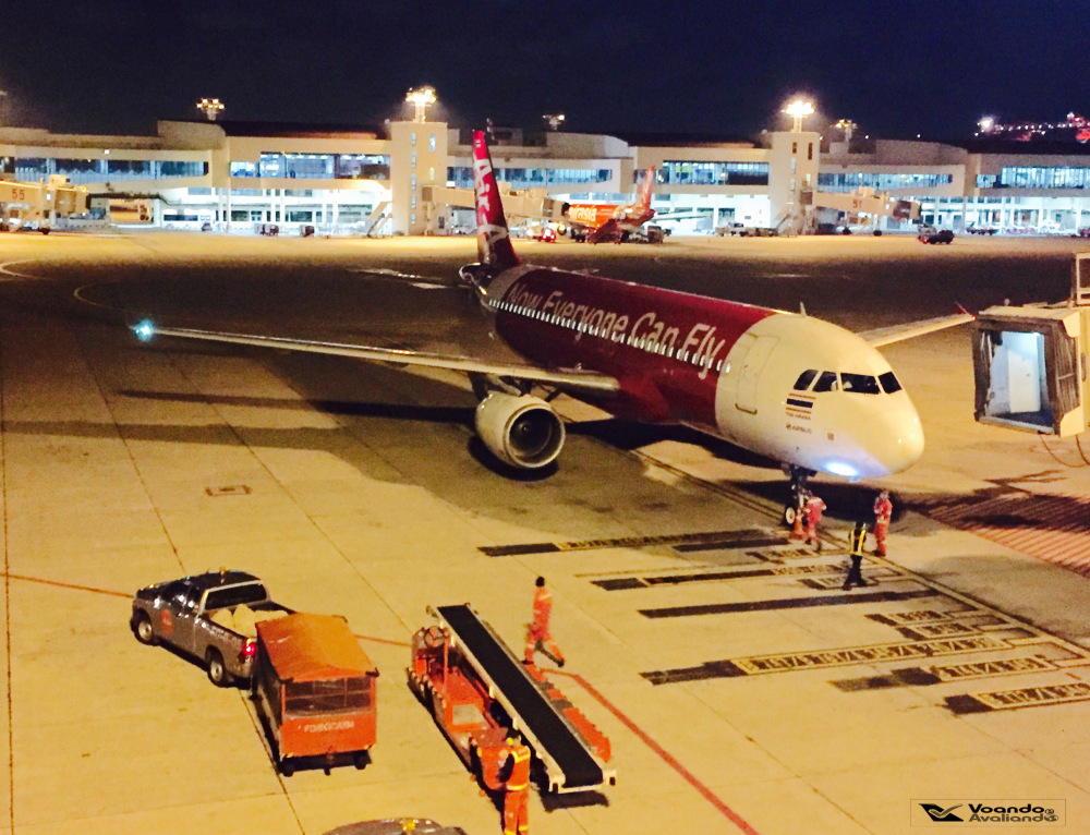 – o avião que me levaria até Phuket chegou do seu voo anterior às 20:00h e a pintura externa dele me chamou atenção: uma grande faixa escrito “Now Everyone Can Fly” (em português: “agora todo mundo pode voar”) em branco com fundo vermelho